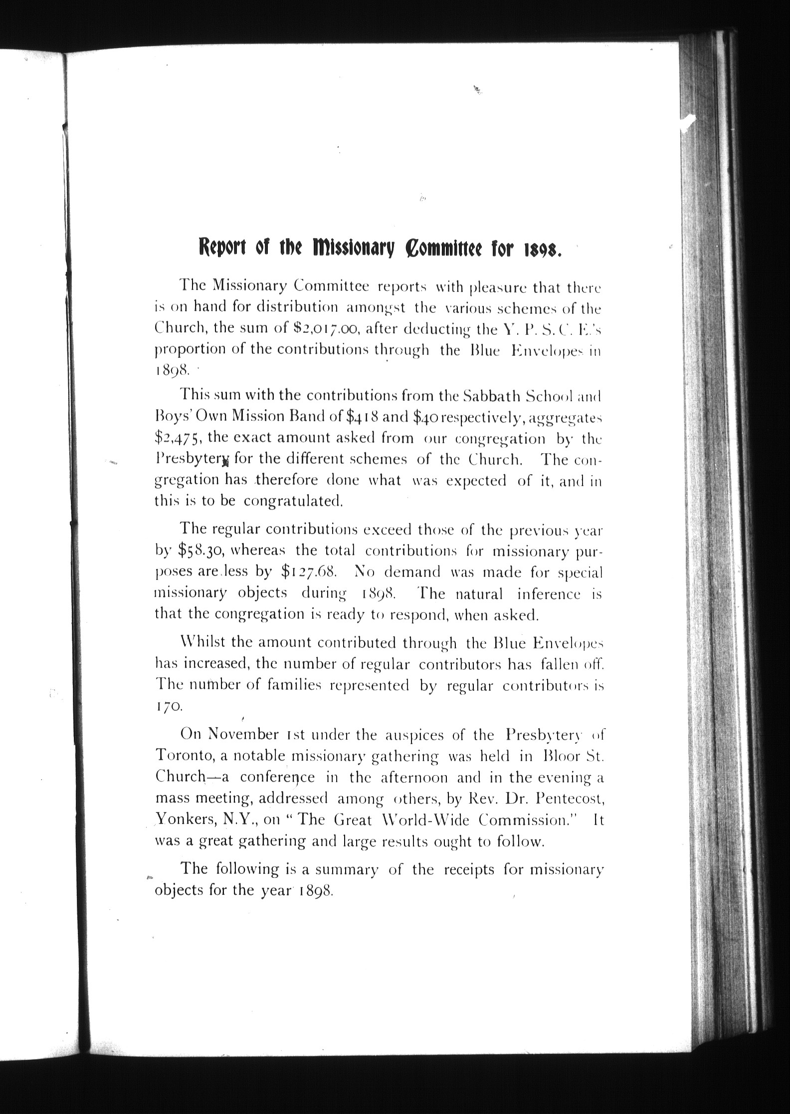 Annual report of the Bloor Street Presbyterian Church : Eleventh annual report of the Bloor Street Presbyterian Church : containing a statement of the affairs of the congregation for the year 1898 : Eleventh (1898)