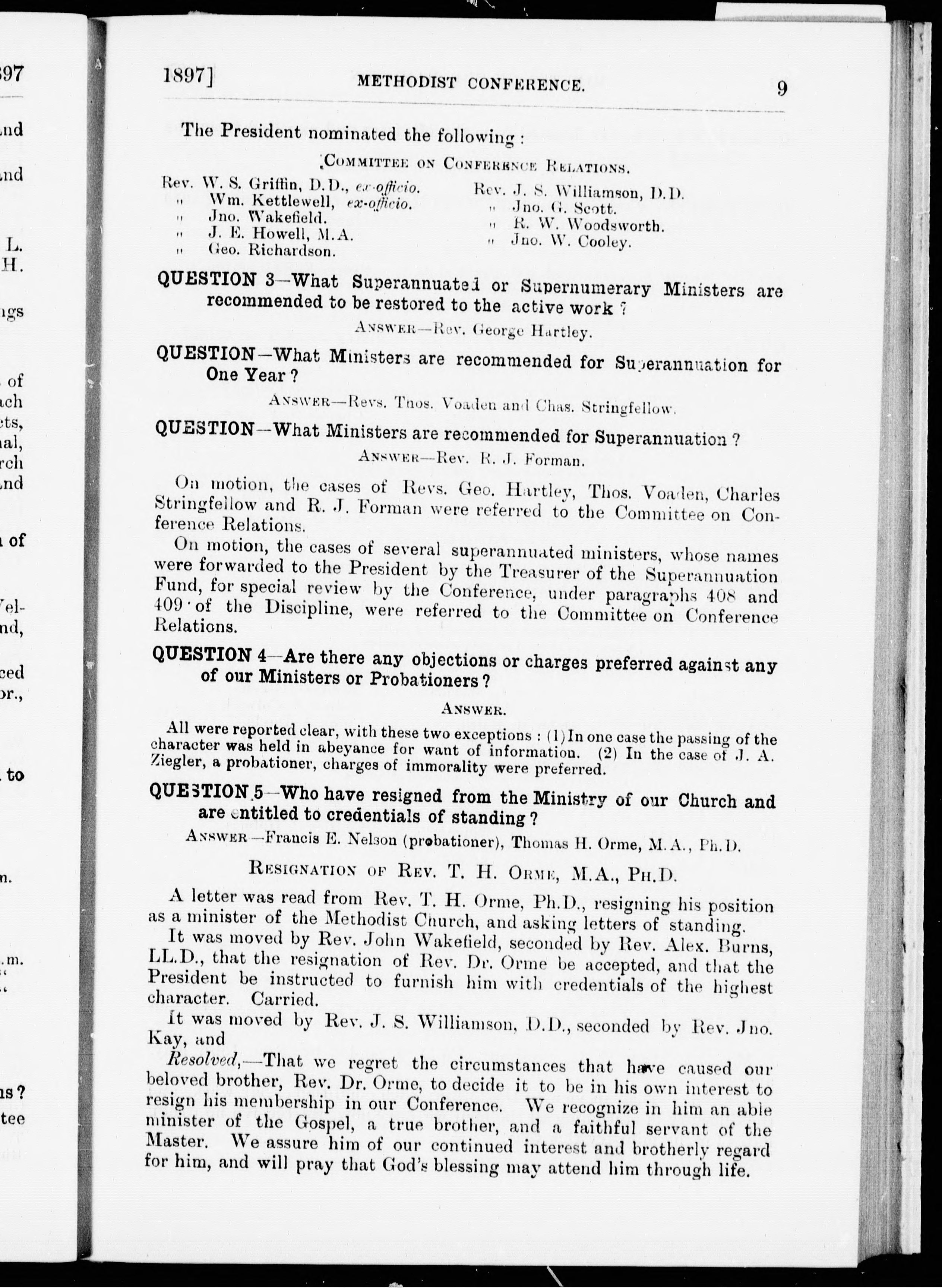 Minutes of the proceedings of the ... session of the Hamilton Annual Conference of the Methodist Church : Minutes of the proceedings of the third session of the Hamilton Annual Conference of the Methodist Church : held in the Wellington Street Methodist Church, in the city of Brantford, Ont., from Wednesday, June 2nd to Tuesday evening, June 8th, 1897 : Third (1897)