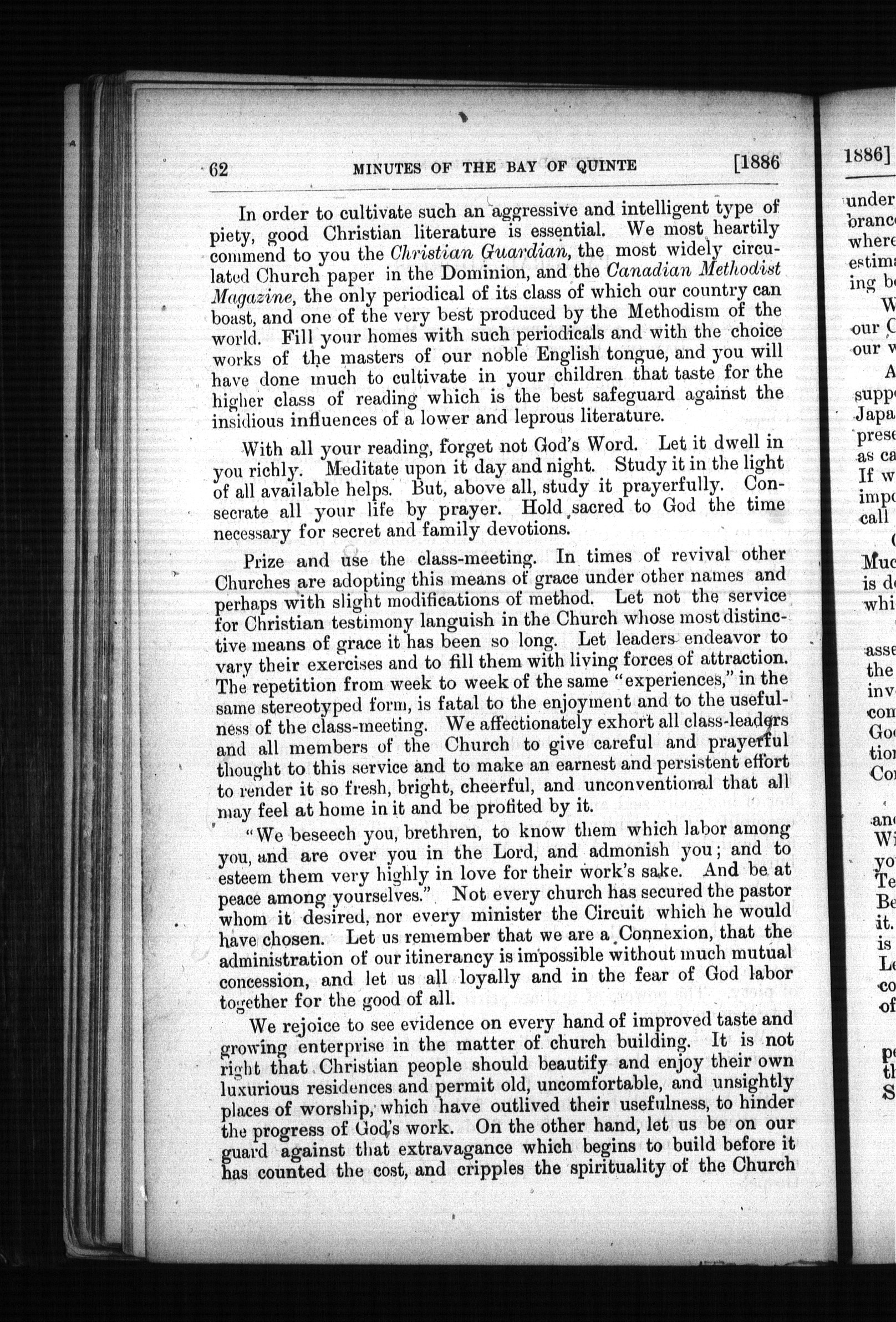 - Minutes of the proceedings of the third session of the Bay of Quinte Conference of the Methodist Church, held in the First Methodist Church, Picton, from June 3rd to June 8th, 1886 : Third (1886)
