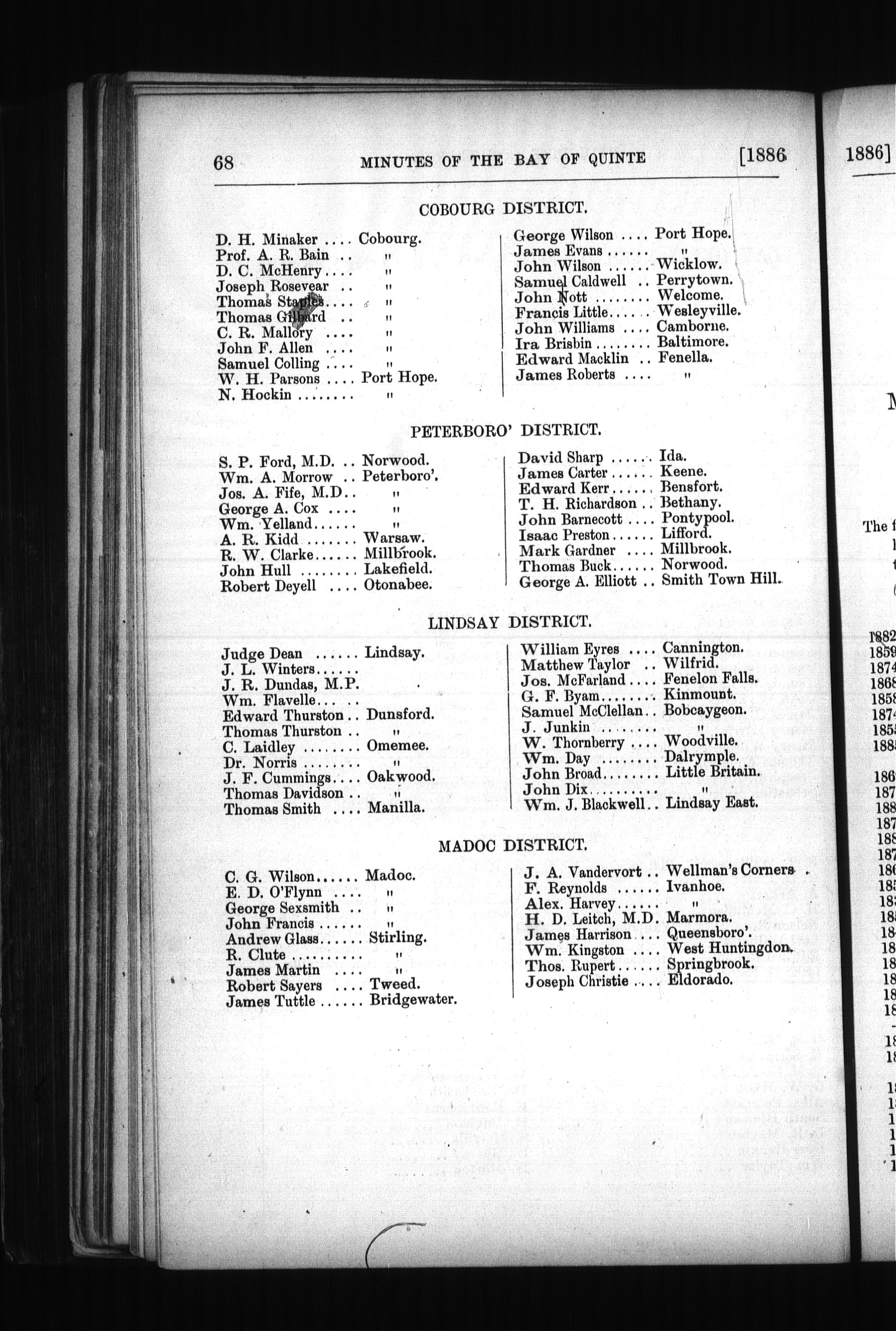 Minutes of the proceedings of the third session of the Bay of Quinte Conference of the Methodist Church, held in the First Methodist Church, Picton, from June 3rd to June 8th, 1886 : Third (1886)