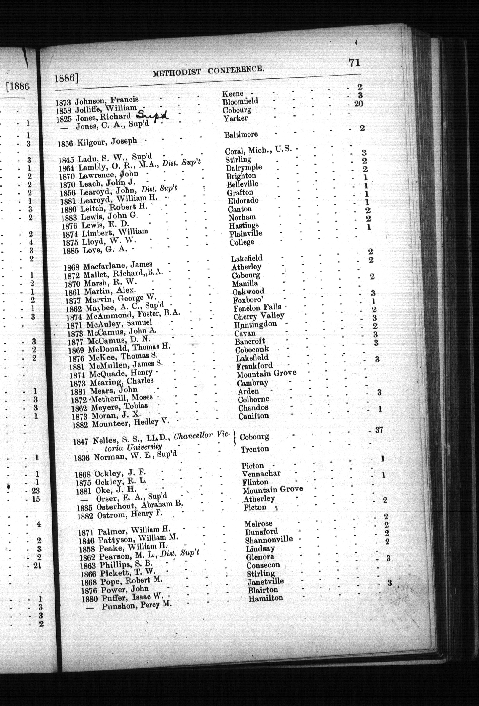 Minutes of the proceedings of the third session of the Bay of Quinte Conference of the Methodist Church, held in the First Methodist Church, Picton, from June 3rd to June 8th, 1886 : Third (1886)