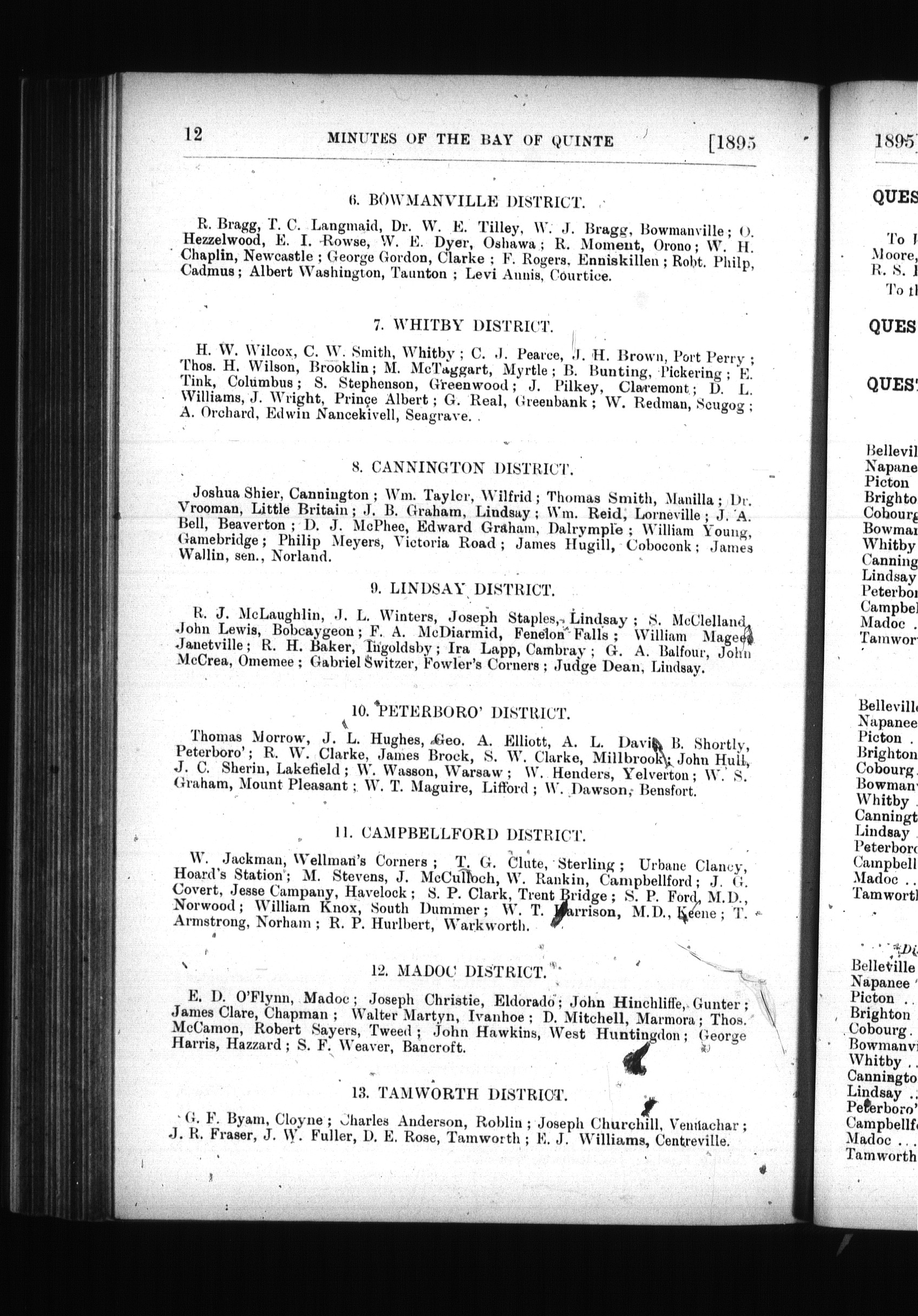 Minutes of the proceedings of the ... session of the Bay of Quinte Conference of the Methodist Church : Minutes of the proceedings of the twelfth session of the Bay of Quinte Annual Conference of the Methodist Church, held in the First Methodist Church, Picton, from June 5th to June 12th, 1895 : Twelfth (1895)