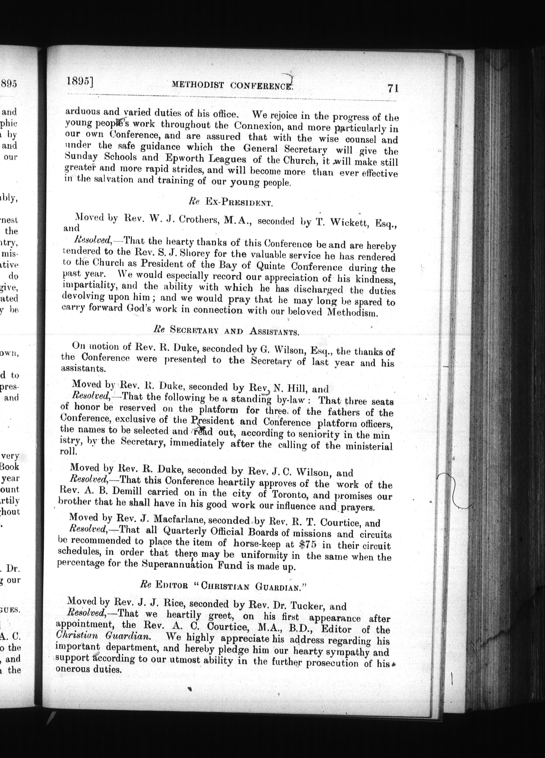 Minutes of the proceedings of the ... session of the Bay of Quinte Conference of the Methodist Church : Minutes of the proceedings of the twelfth session of the Bay of Quinte Annual Conference of the Methodist Church, held in the First Methodist Church, Picton, from June 5th to June 12th, 1895 : Twelfth (1895)