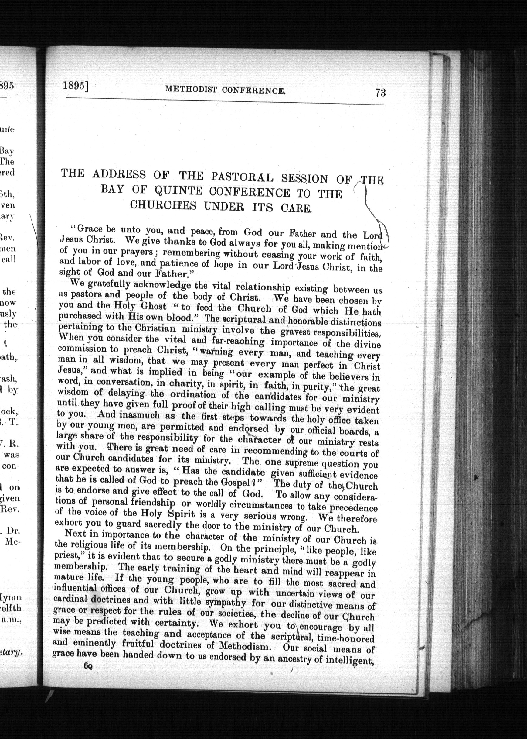 Minutes of the proceedings of the twelfth session of the Bay of Quinte Annual Conference of the Methodist Church, held in the First Methodist Church, Picton, from June 5th to June 12th, 1895 : Twelfth (1895)