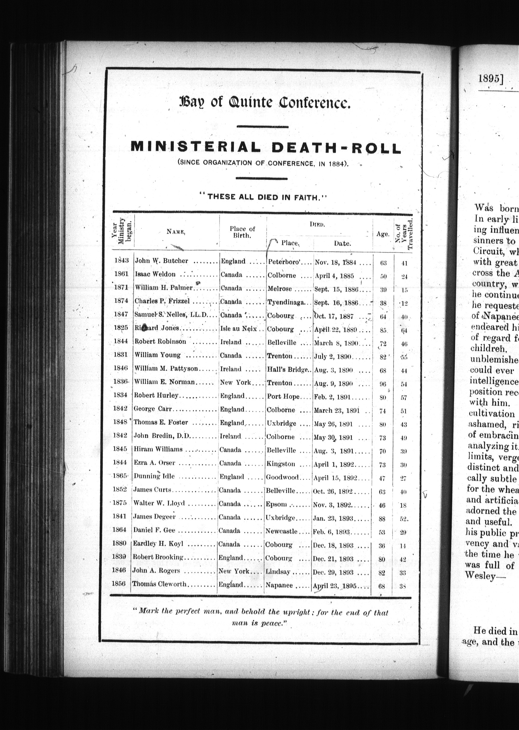 Minutes of the proceedings of the twelfth session of the Bay of Quinte Annual Conference of the Methodist Church, held in the First Methodist Church, Picton, from June 5th to June 12th, 1895 : Twelfth (1895)