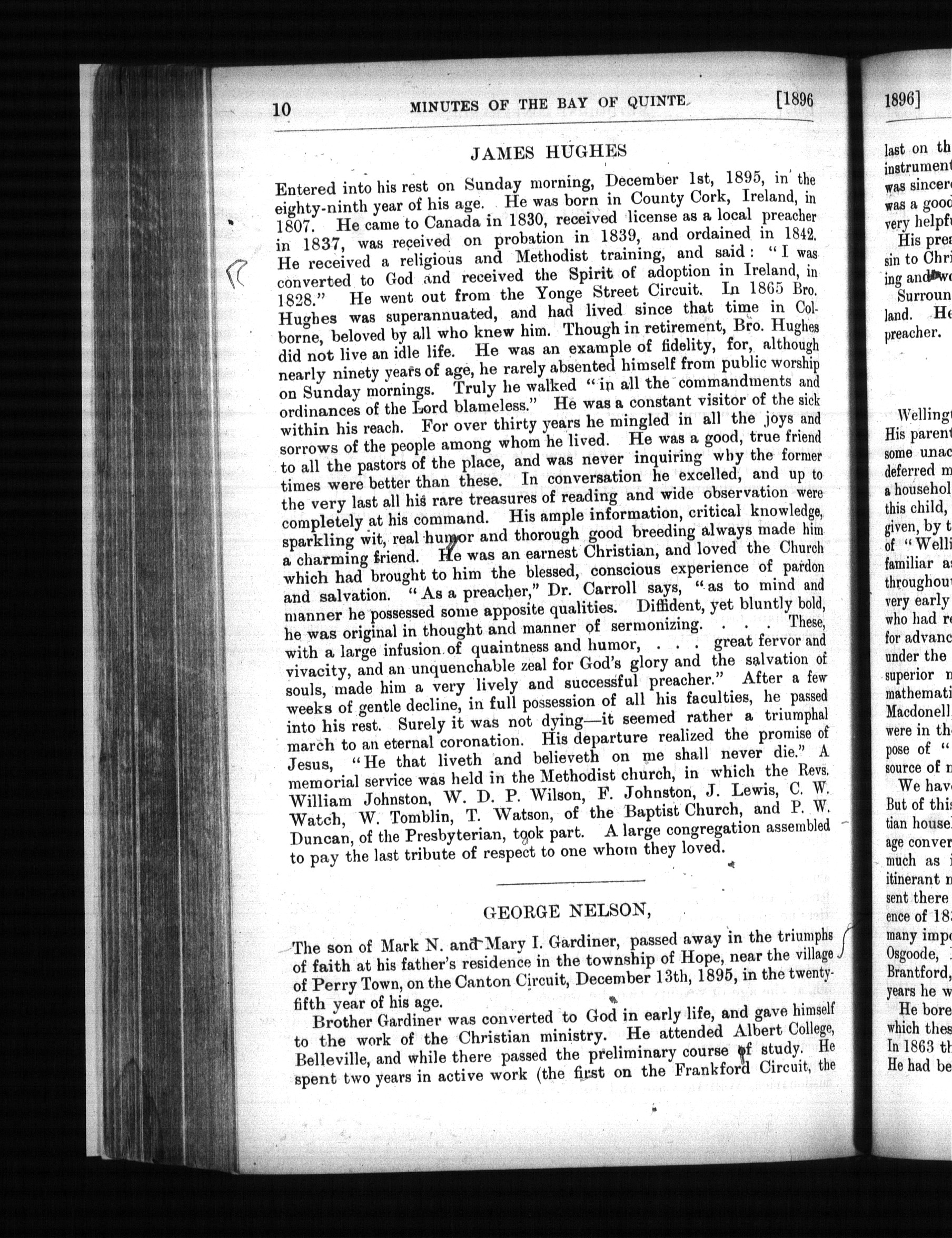 - Minutes of the proceedings of the thirteenth session of the Bay of Quinte Annual Conference of the Methodist Church, held in Wesley Church, Trenton, from June 4th to June 9th, 1896 : Thirteenth (1896)