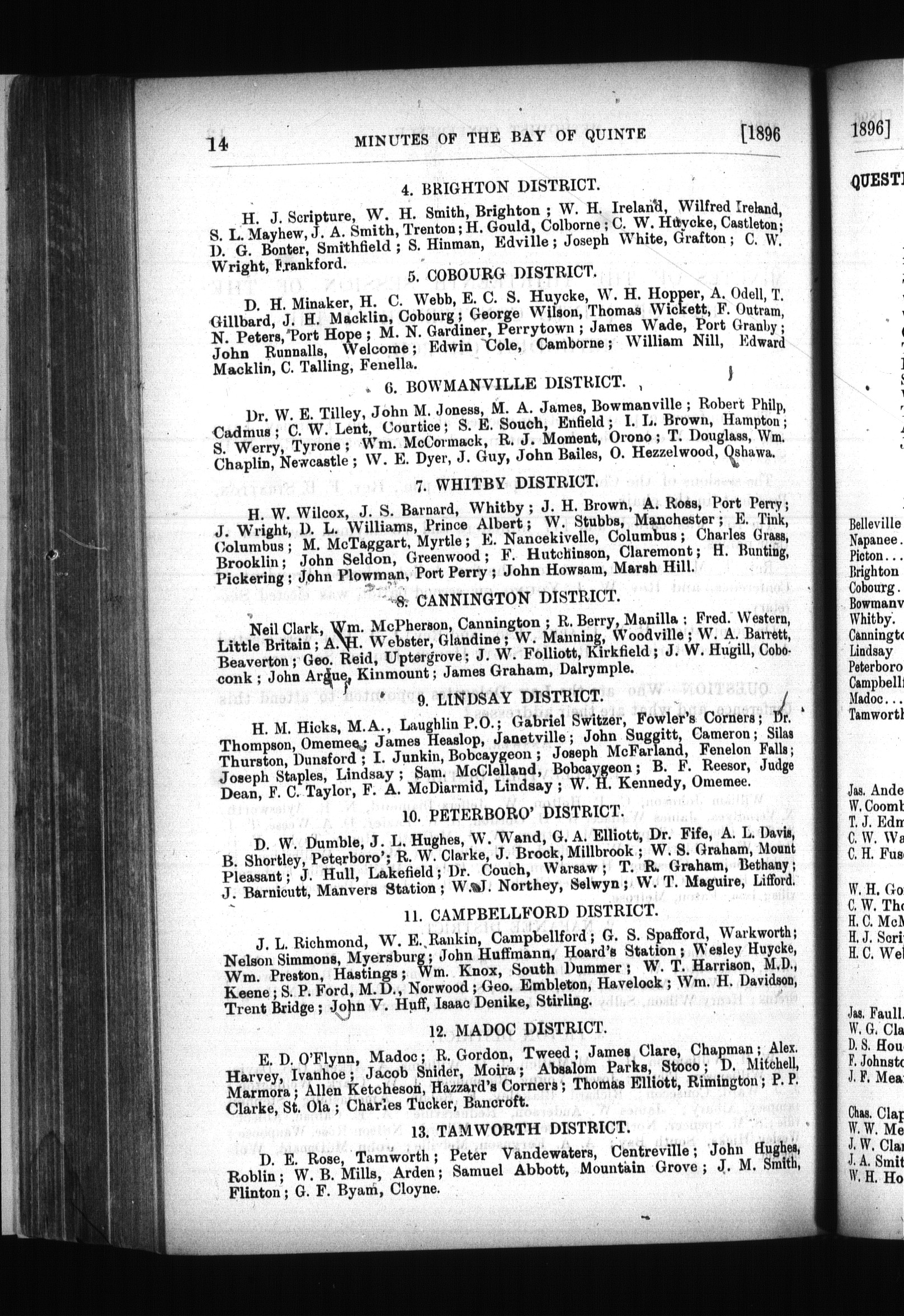 - Minutes of the proceedings of the thirteenth session of the Bay of Quinte Annual Conference of the Methodist Church, held in Wesley Church, Trenton, from June 4th to June 9th, 1896 : Thirteenth (1896)