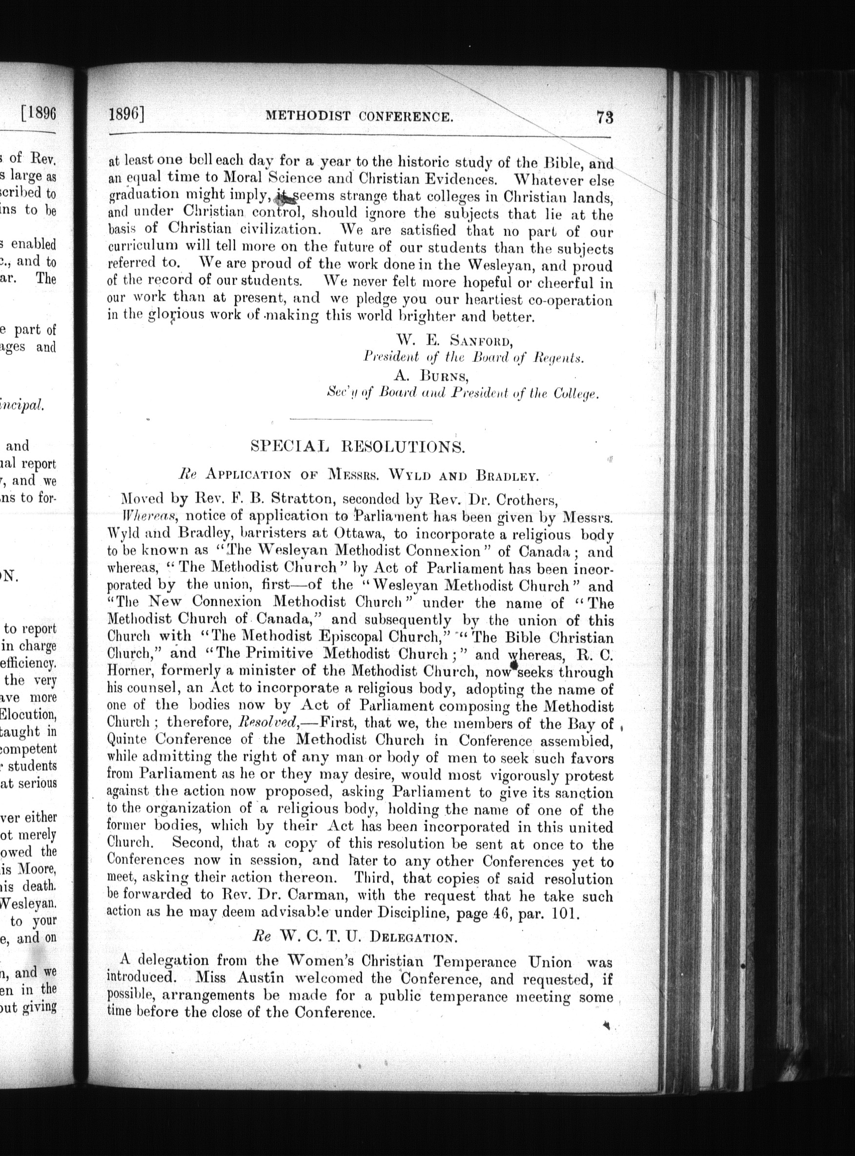 Minutes of the proceedings of the ... session of the Bay of Quinte Conference of the Methodist Church : Minutes of the proceedings of the thirteenth session of the Bay of Quinte Annual Conference of the Methodist Church, held in Wesley Church, Trenton, from June 4th to June 9th, 1896 : Thirteenth (1896)