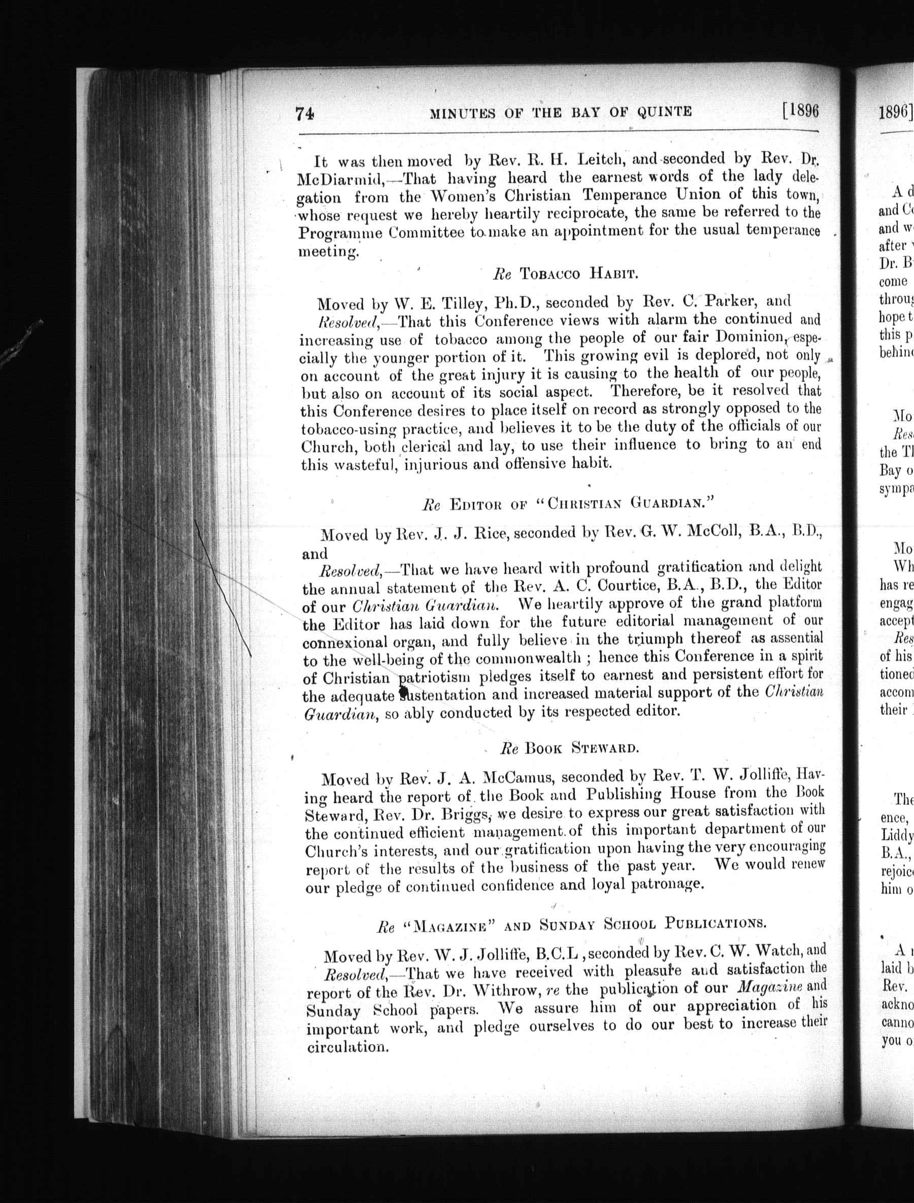 Minutes of the proceedings of the ... session of the Bay of Quinte Conference of the Methodist Church : Minutes of the proceedings of the thirteenth session of the Bay of Quinte Annual Conference of the Methodist Church, held in Wesley Church, Trenton, from June 4th to June 9th, 1896 : Thirteenth (1896)
