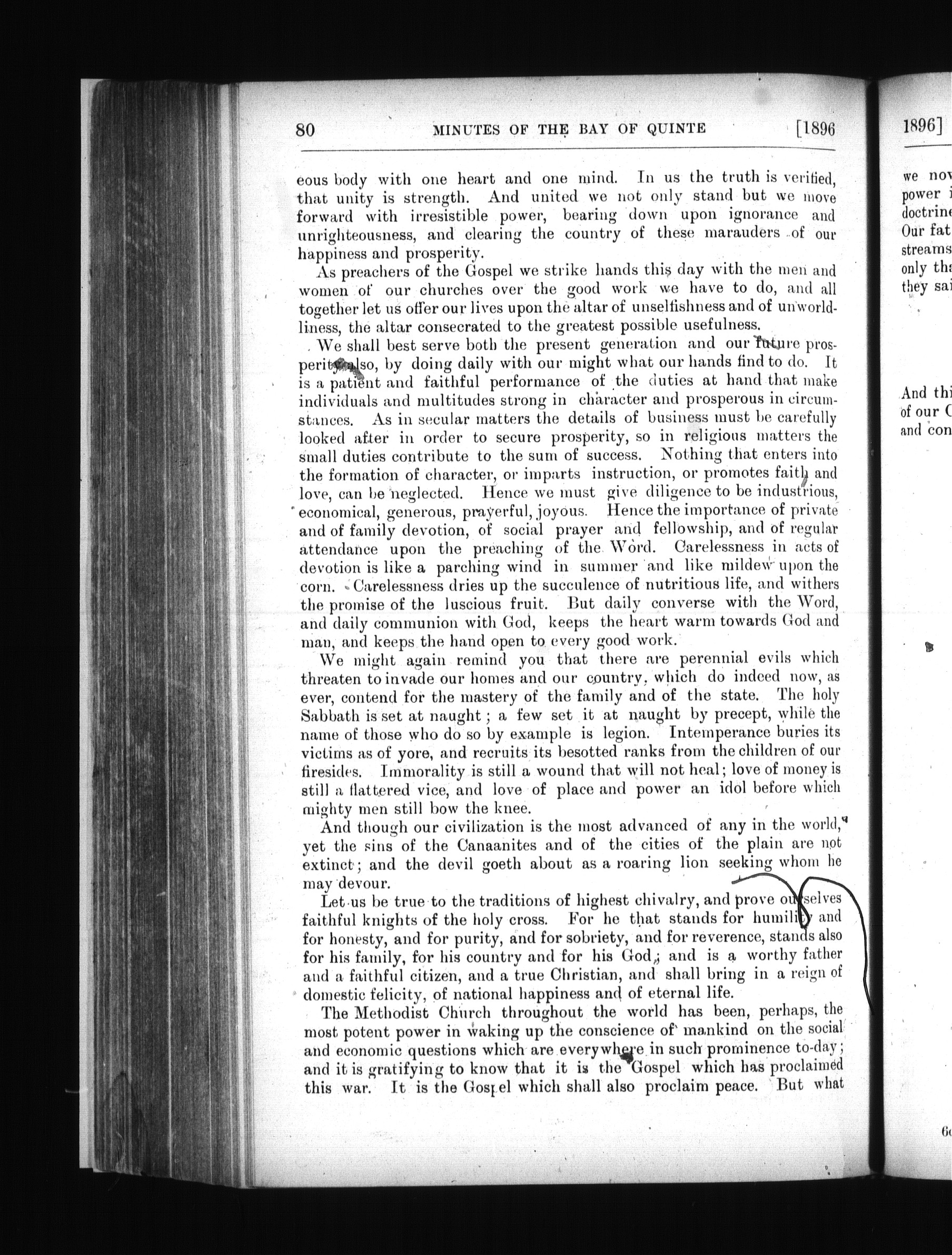 Minutes of the proceedings of the ... session of the Bay of Quinte Conference of the Methodist Church : Minutes of the proceedings of the thirteenth session of the Bay of Quinte Annual Conference of the Methodist Church, held in Wesley Church, Trenton, from June 4th to June 9th, 1896 : Thirteenth (1896)