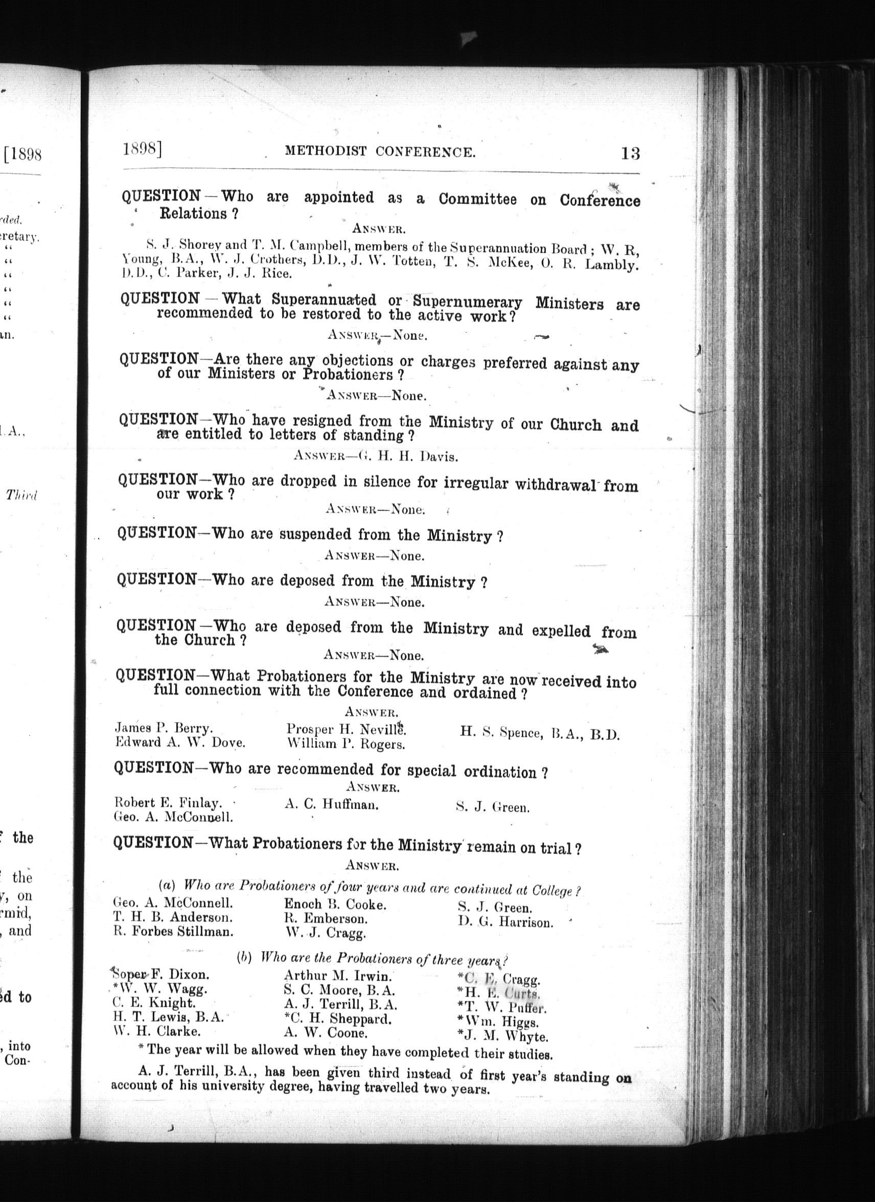 Minutes of the proceedings of the ... session of the Bay of Quinte Conference of the Methodist Church : Minutes of the proceedings of the fifteenth session of the Bay of Quinte Annual Conference of the Methodist Church, held in the Cambridge Street Methodist Church, Lindsay, from June 2nd to June 8th, 1898 : Fifteenth (1898)