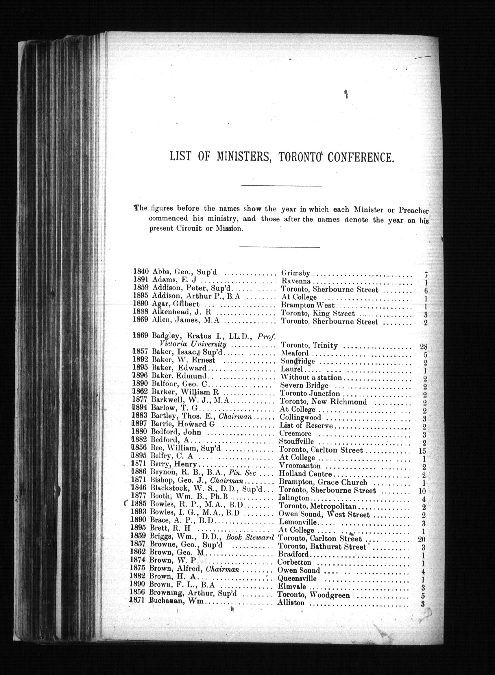 Minutes of the proceedings of the ... session of the Bay of Quinte Conference of the Methodist Church : Minutes of the proceedings of the fifteenth session of the Bay of Quinte Annual Conference of the Methodist Church, held in the Cambridge Street Methodist Church, Lindsay, from June 2nd to June 8th, 1898 : Fifteenth (1898)
