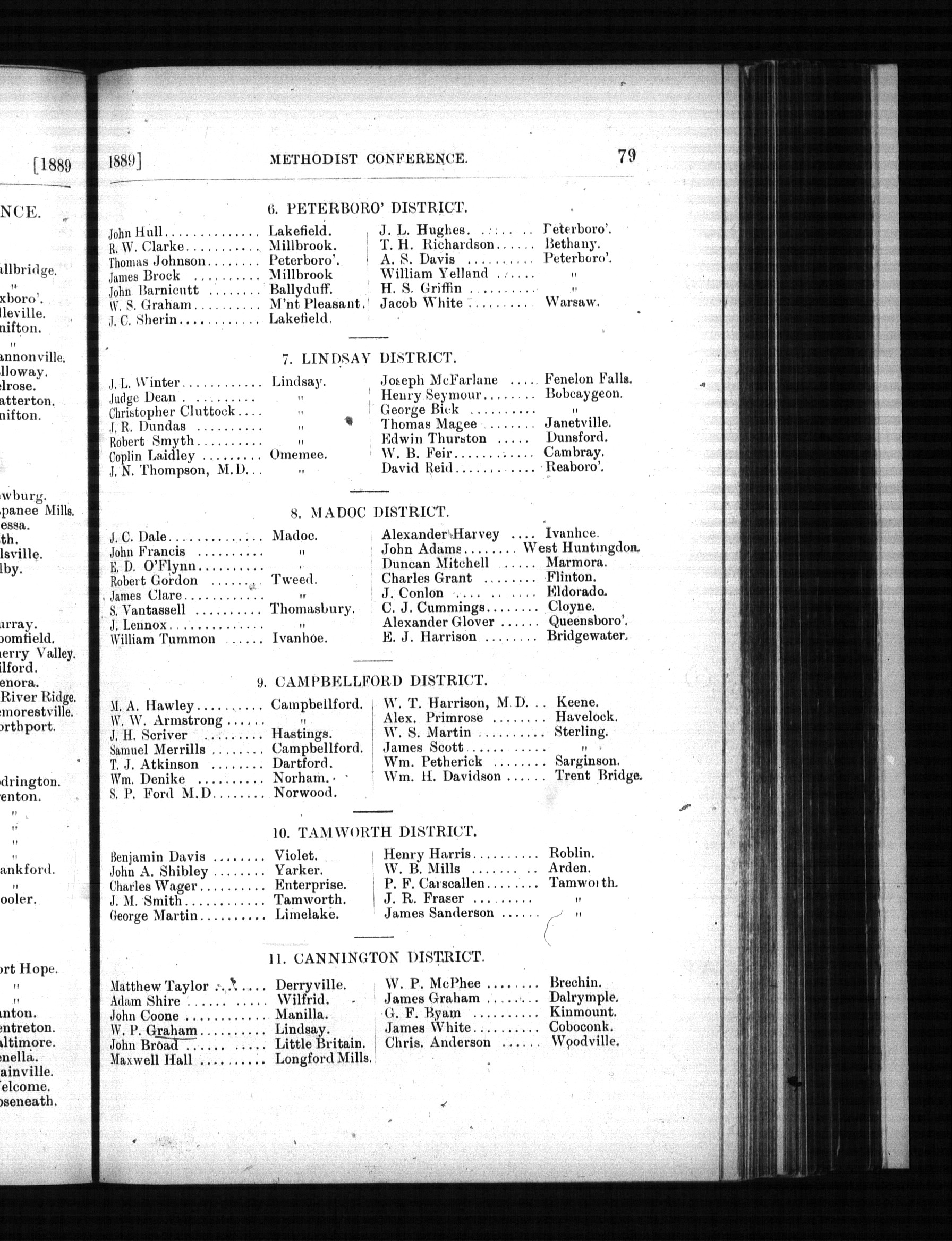 Minutes of the proceedings of the ... session of the Bay of Quinte Conference of the Methodist Church : Minutes of the proceedings of the sixth session of the Bay of Quinte Conference of the Methodist Church, held in the Bridge Street Methodist Church, Belleville, from June 6th to June 11th, 1889 : Sixth (1889)