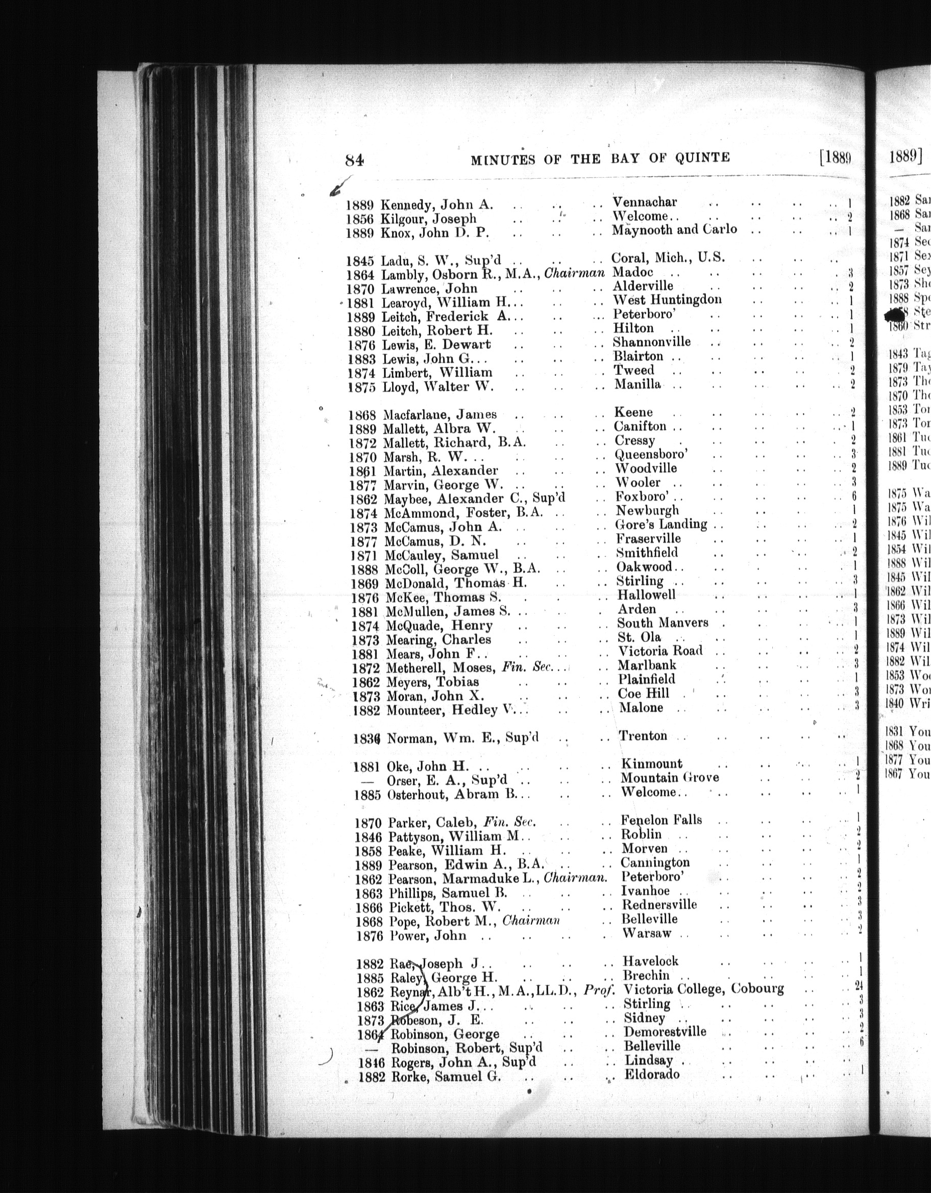 - Minutes of the proceedings of the sixth session of the Bay of Quinte Conference of the Methodist Church, held in the Bridge Street Methodist Church, Belleville, from June 6th to June 11th, 1889 : Sixth (1889)