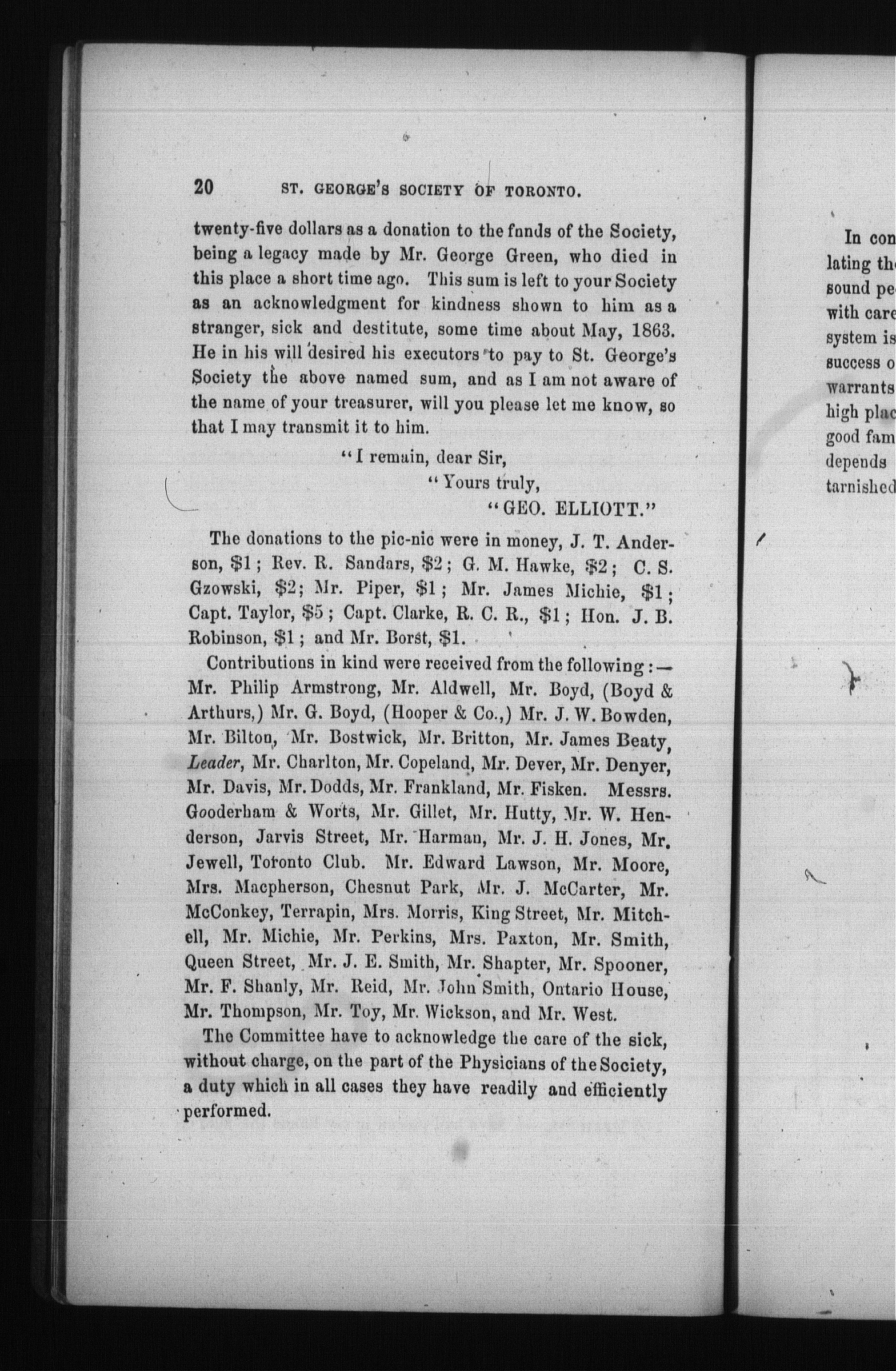 Aide [Toronto] : [St. George's Society of Toronto], 1865; 28 images avec recherche en texte intégral