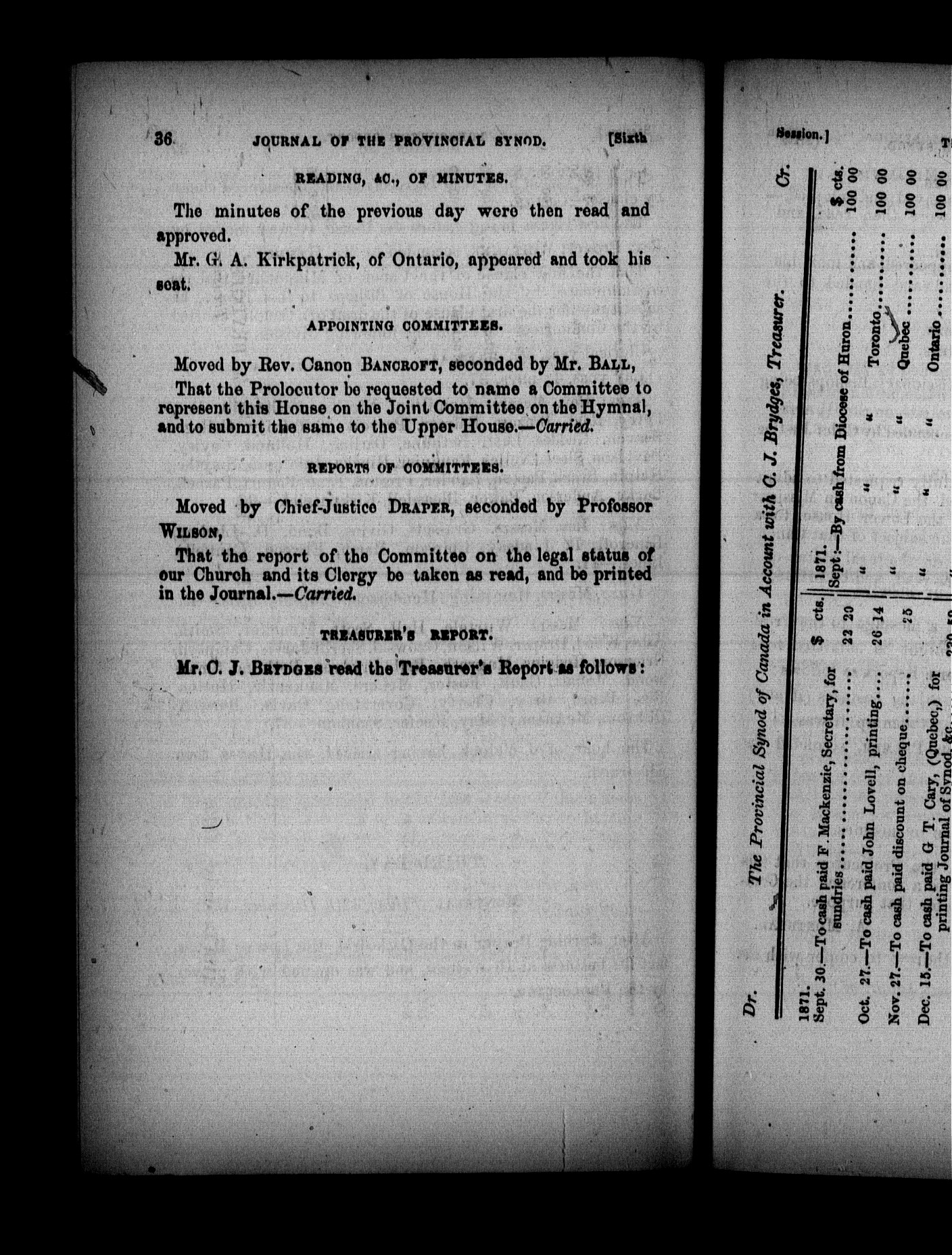 - Journal of the proceedings of the Provincial Synod of the United Church of England and Ireland in Canada : Sixth (1872)