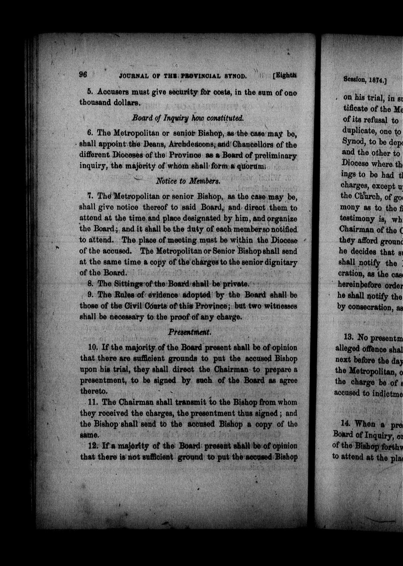 - Journal of the proceedings of the Provincial Synod of the United Church of England and Ireland in Canada : Eighth (1874)