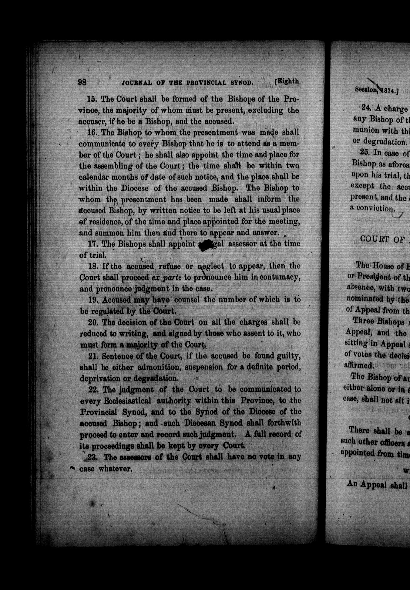 - Journal of the proceedings of the Provincial Synod of the United Church of England and Ireland in Canada : Eighth (1874)