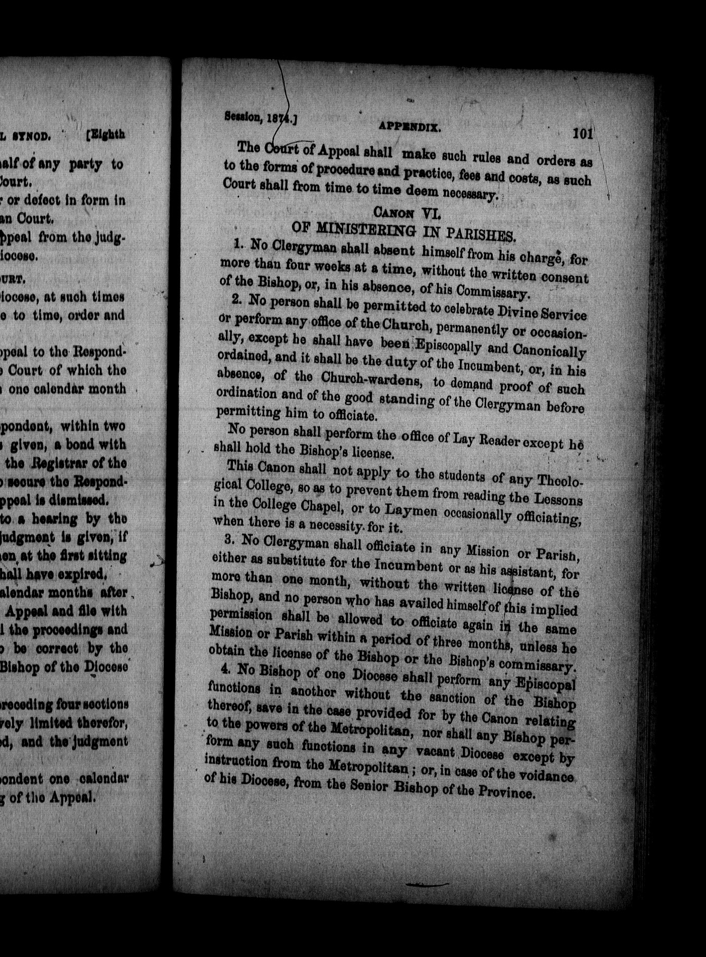 [Montréal?] : [Provincial Synod of the United Church of England and Ireland in Canada], 1874; 143 images avec recherche en texte intégral