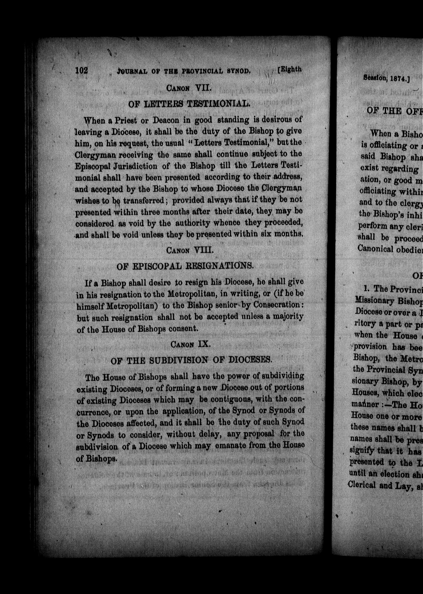 [Montréal?] : [Provincial Synod of the United Church of England and Ireland in Canada], 1874; 143 images avec recherche en texte intégral