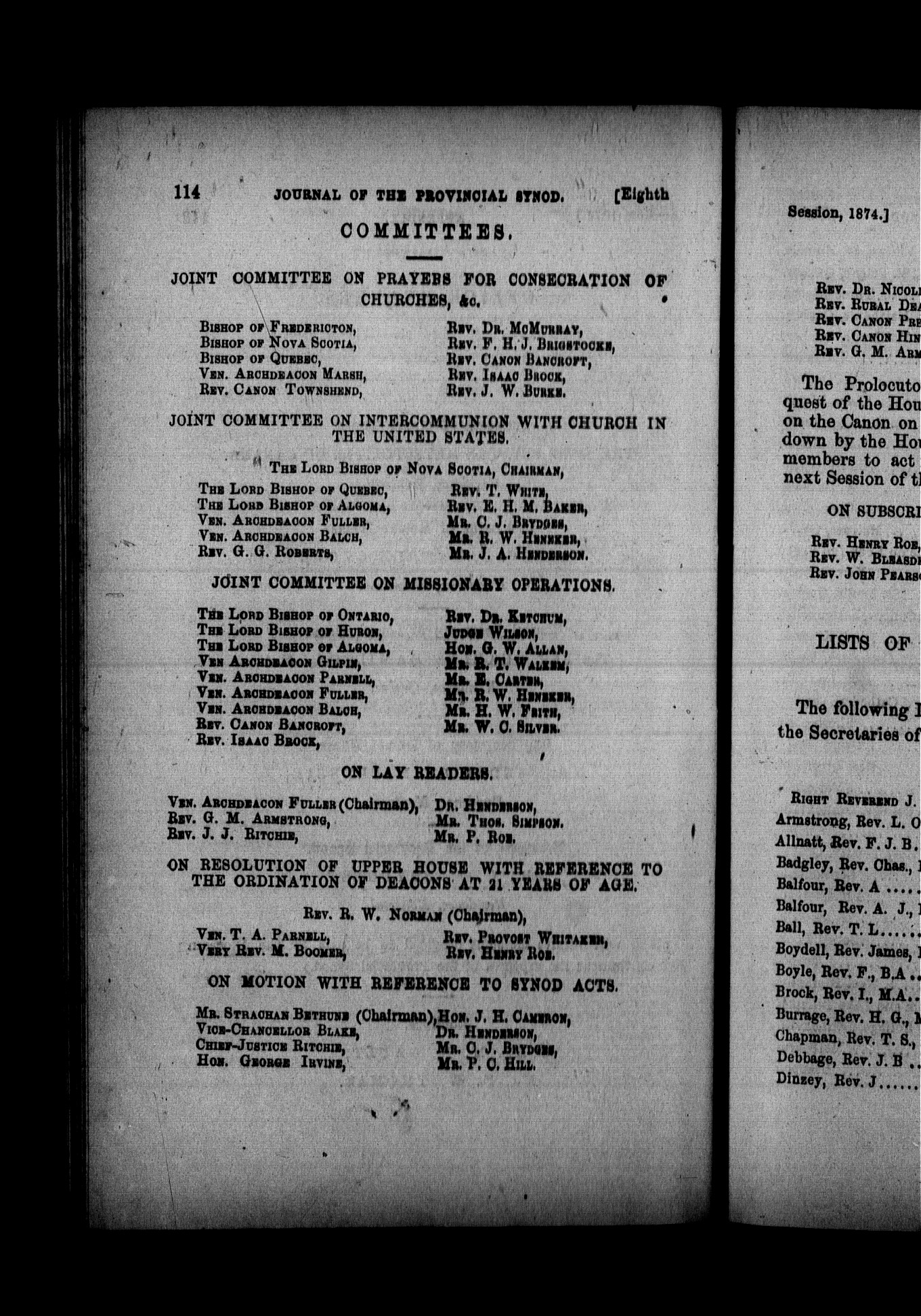 [Montréal?] : [Provincial Synod of the United Church of England and Ireland in Canada], 1874; 143 images avec recherche en texte intégral