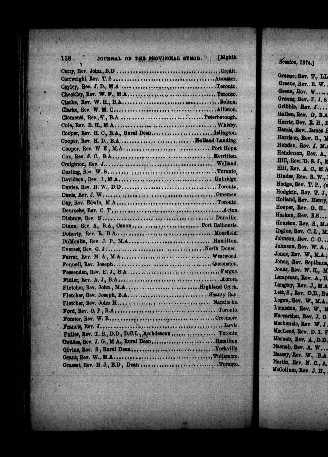 - Journal of the proceedings of the Provincial Synod of the United Church of England and Ireland in Canada : Eighth (1874)
