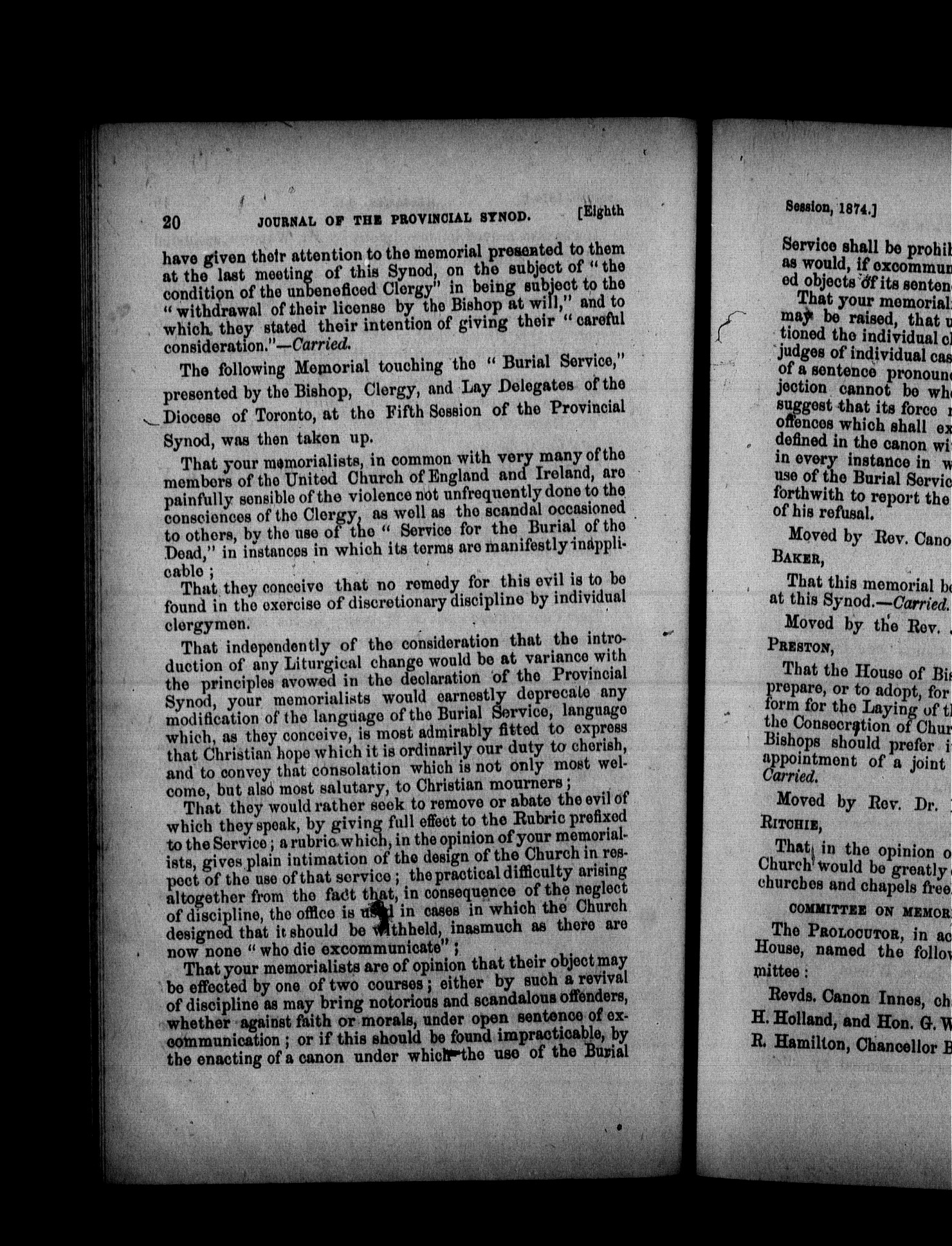 - Journal of the proceedings of the Provincial Synod of the United Church of England and Ireland in Canada : Eighth (1874)