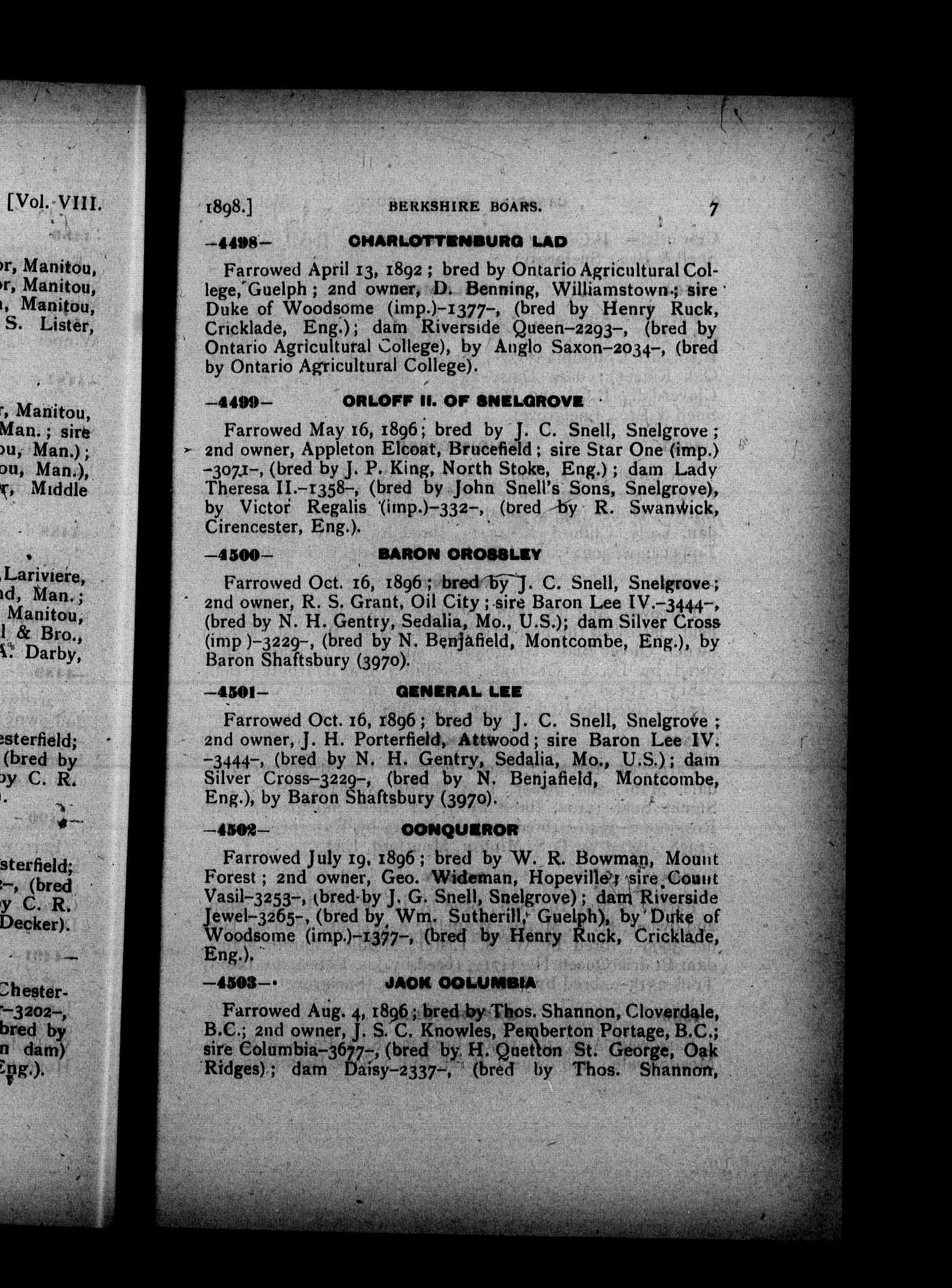 The Dominion swine breeders record / : The Dominion swine breeders record : Volume VIII