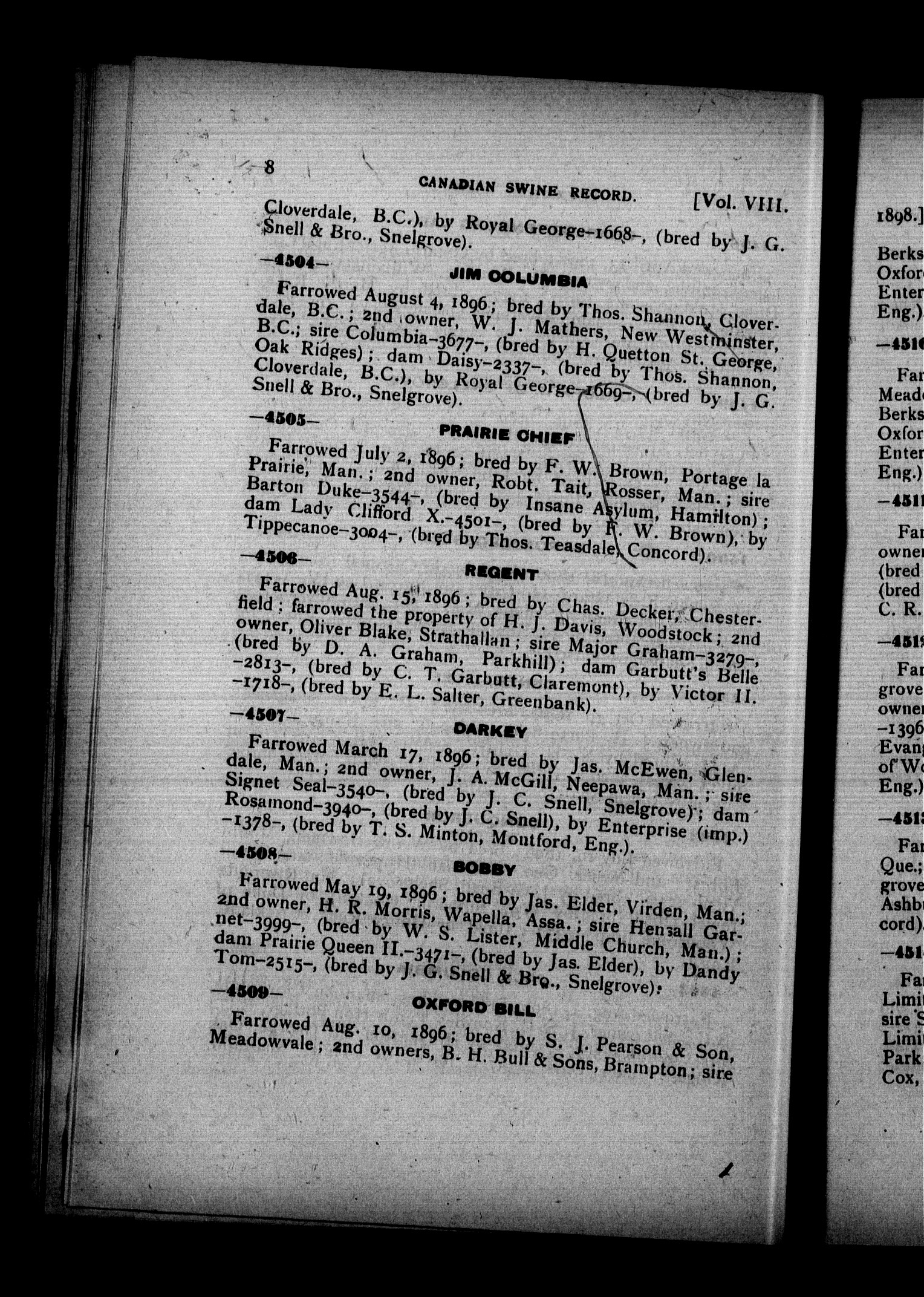 The Dominion swine breeders record / : The Dominion swine breeders record : Volume VIII