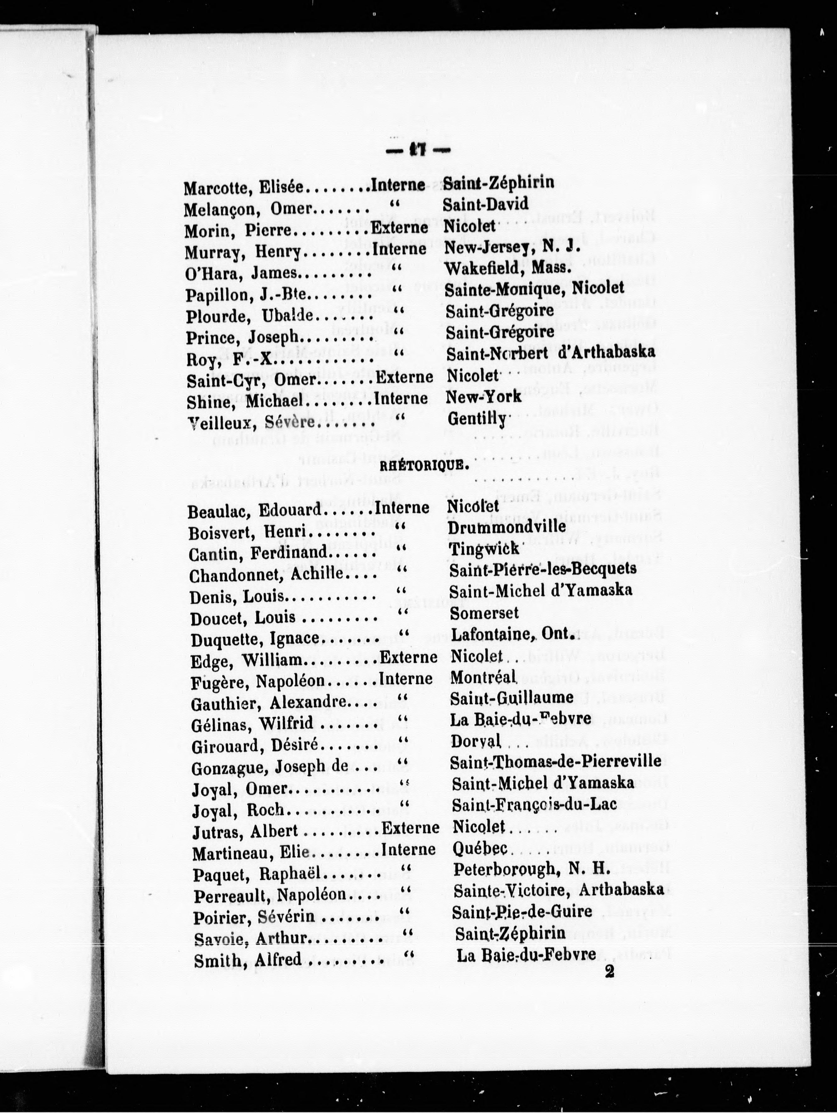 [Nicolet, Québec?]: [Séminaire de Nicolet], 1885