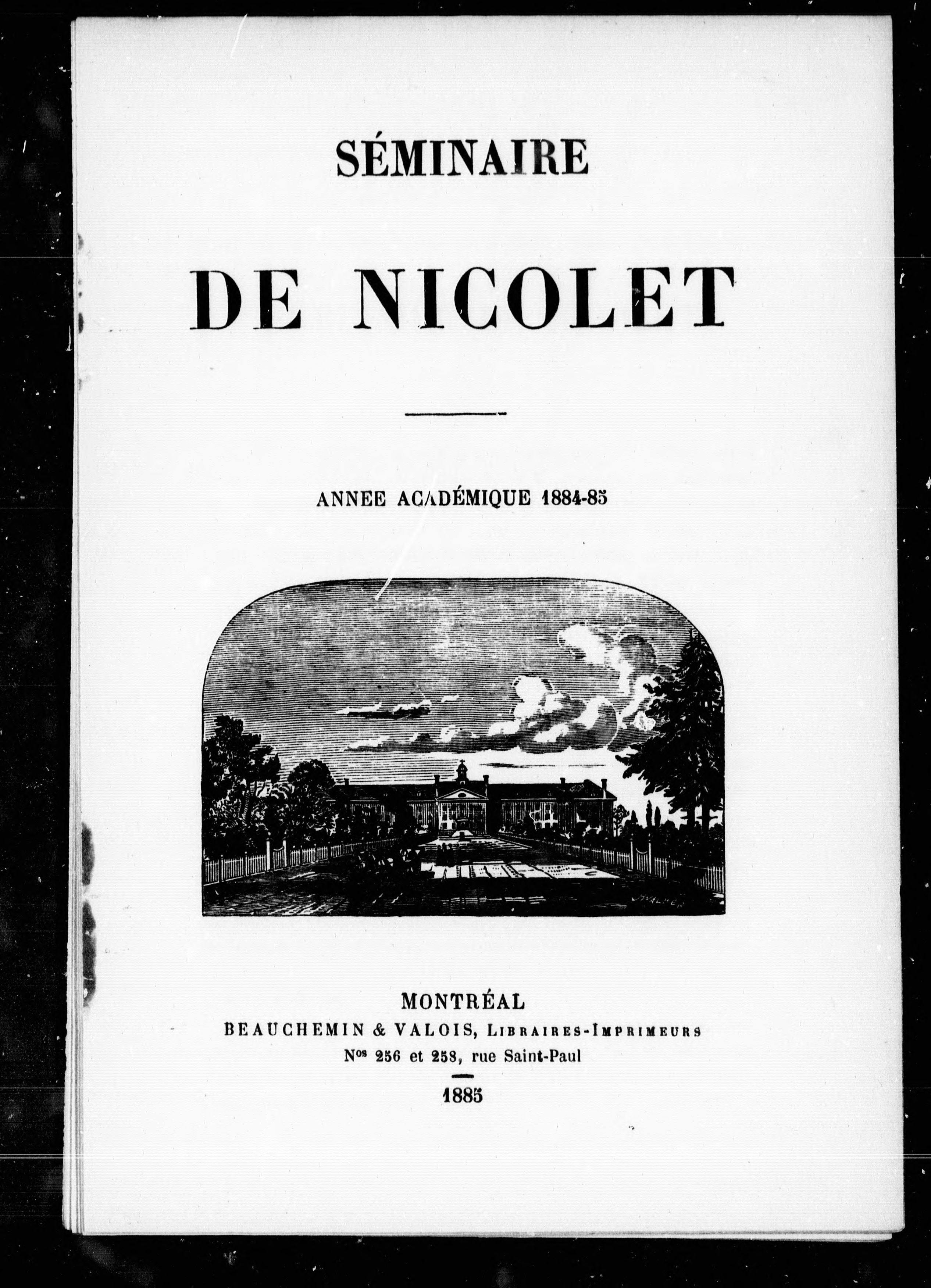 [Nicolet, Québec?]: [Séminaire de Nicolet], 1885