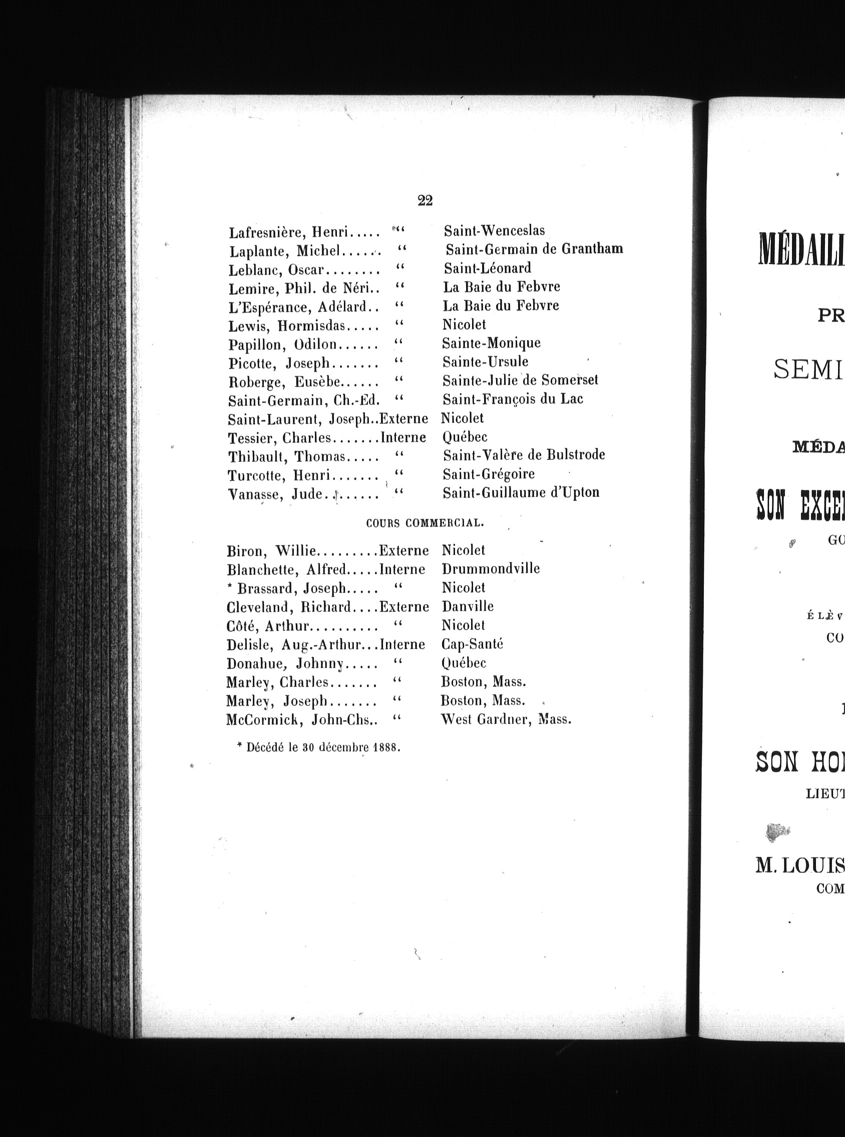 [Nicolet, Québec?] : [Séminaire de Nicolet], 1889