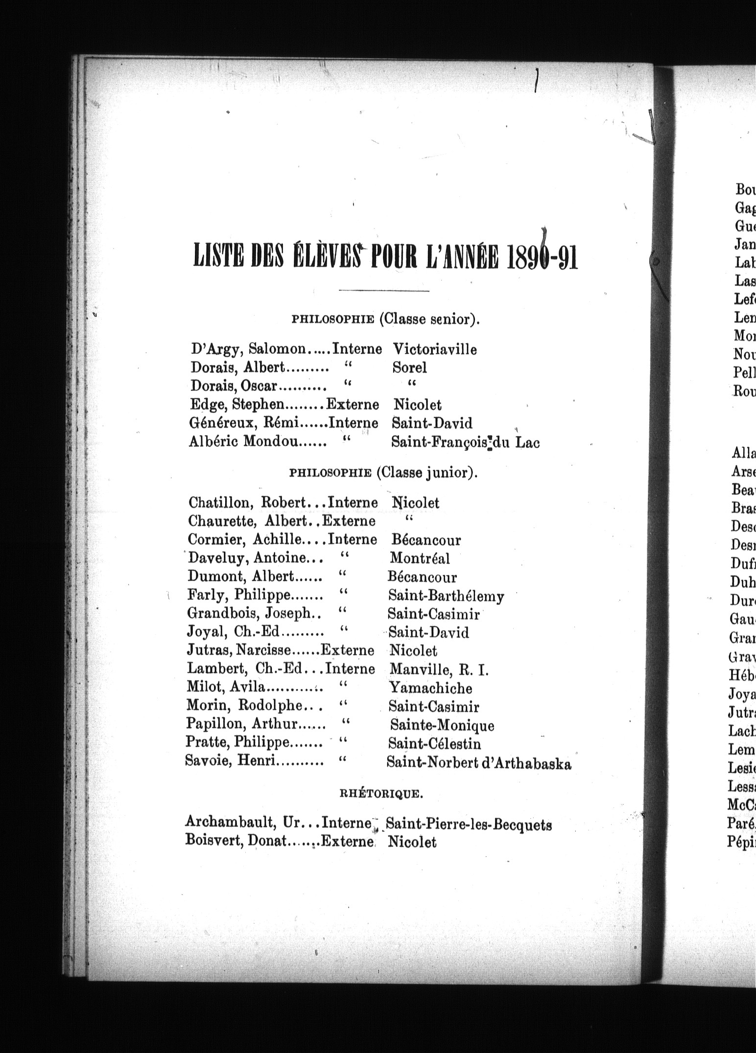 - [Nicolet, Québec?] : [Séminaire de Nicolet], 1891