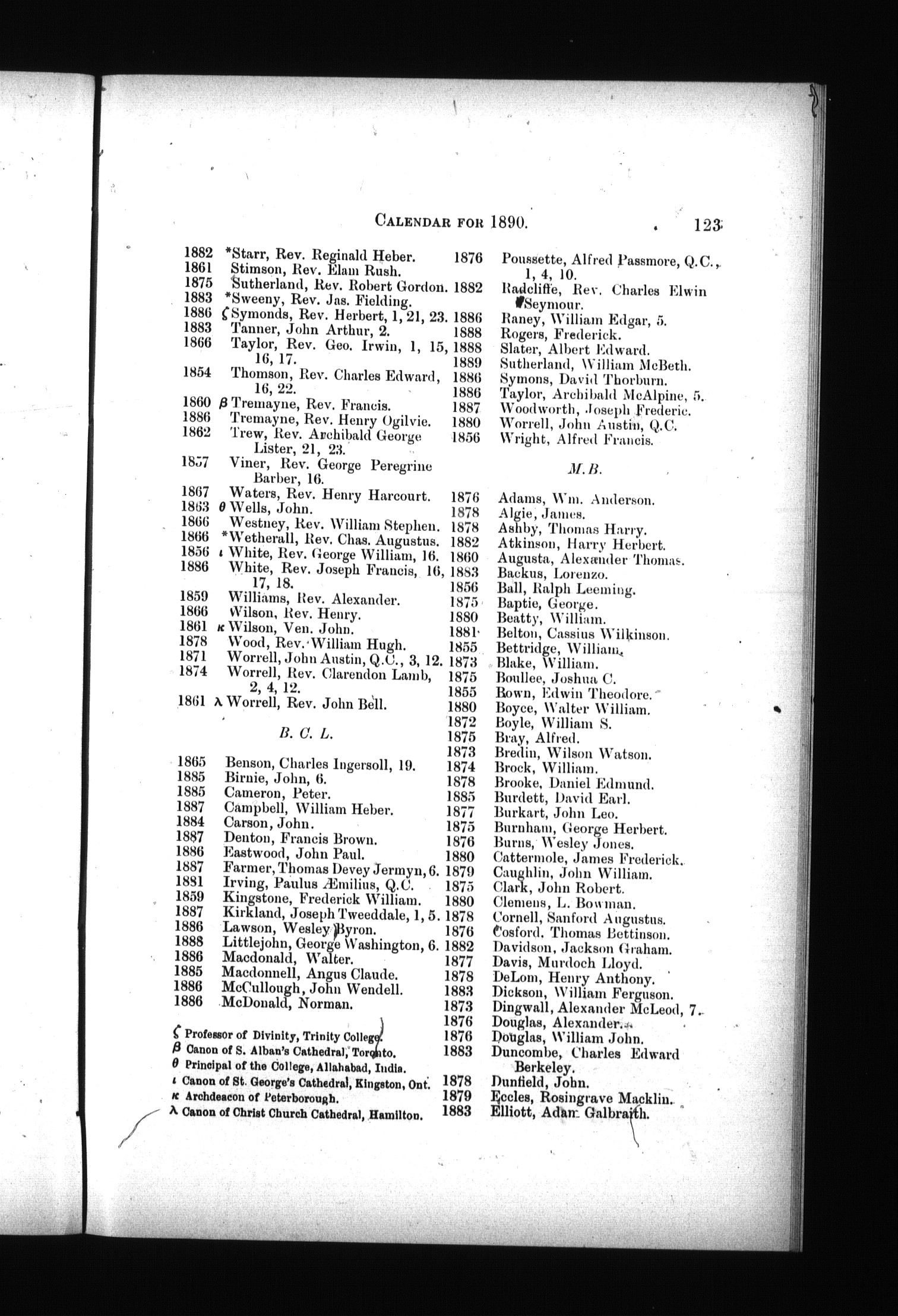 - The calendar of Trinitiy University, Toronto, for the year of our Lord 1890 : 1890