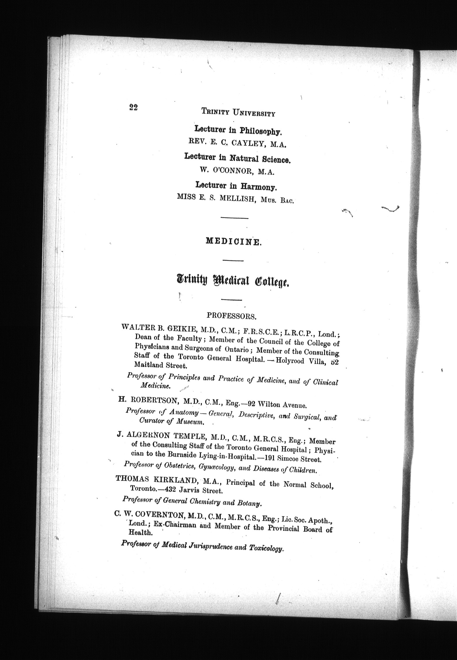 - The calendar of Trinitiy University, Toronto, for the year of our Lord 1890 : 1890