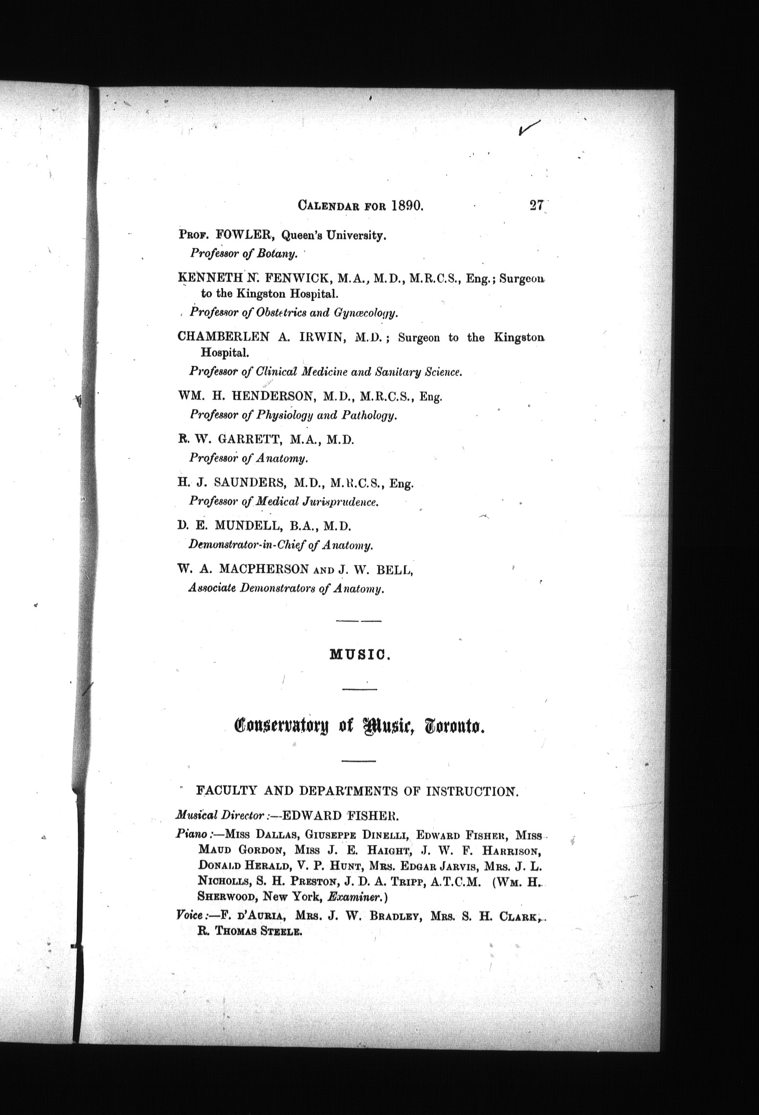 - The calendar of Trinitiy University, Toronto, for the year of our Lord 1890 : 1890