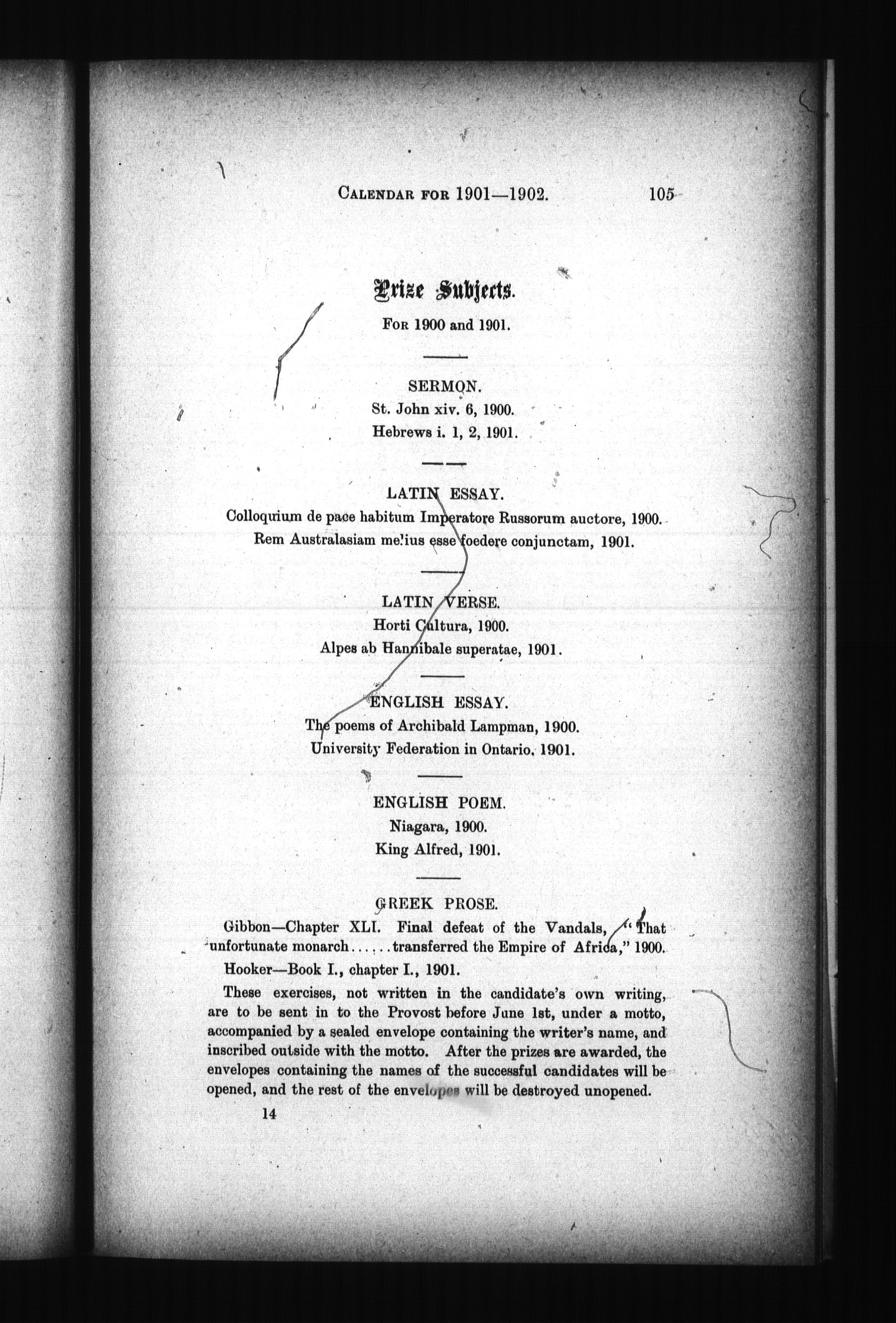 - The abridged calendar of Trinitiy University, Toronto, for 1900-1901 : 1900/1901