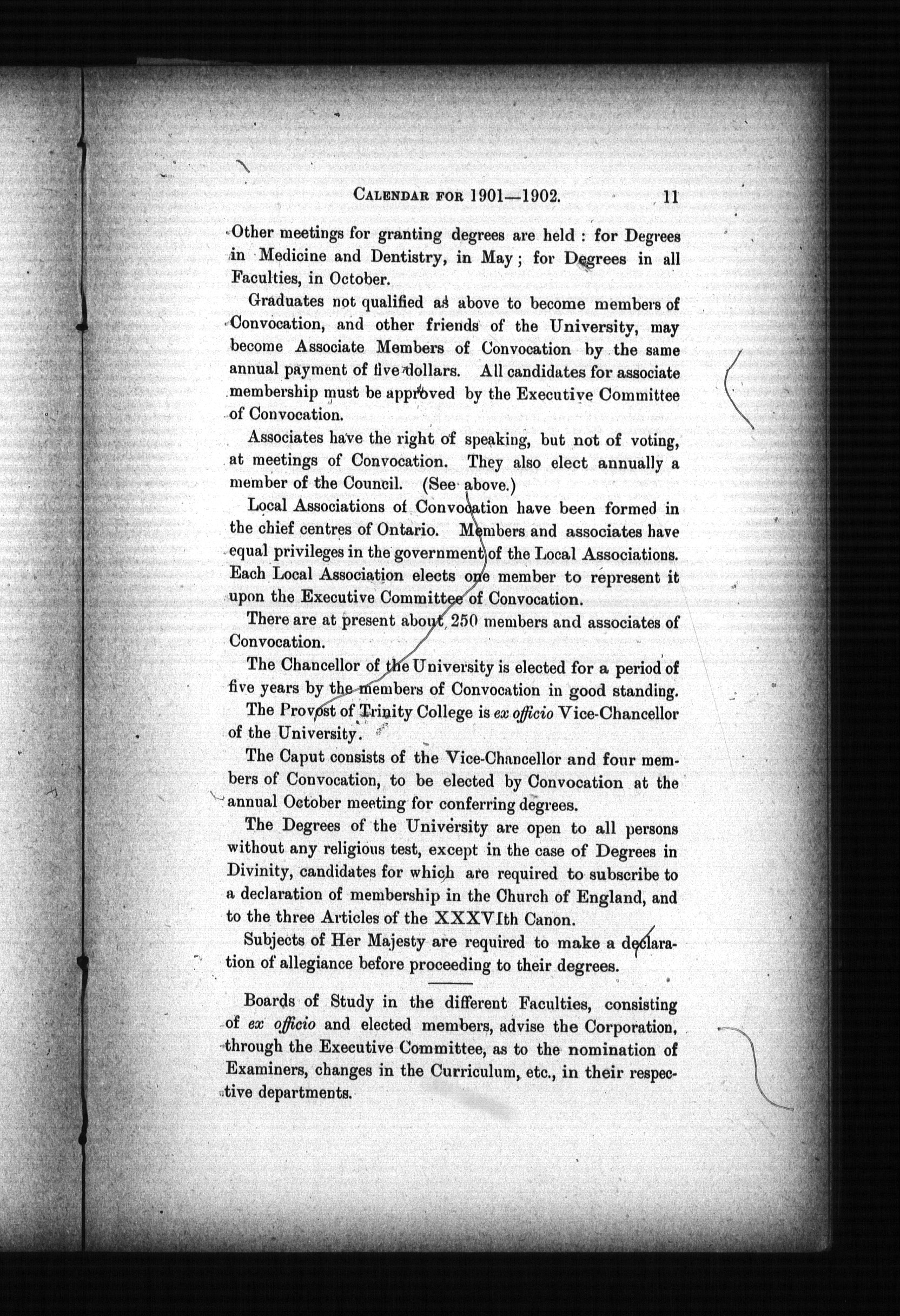 - The abridged calendar of Trinitiy University, Toronto, for 1900-1901 : 1900/1901