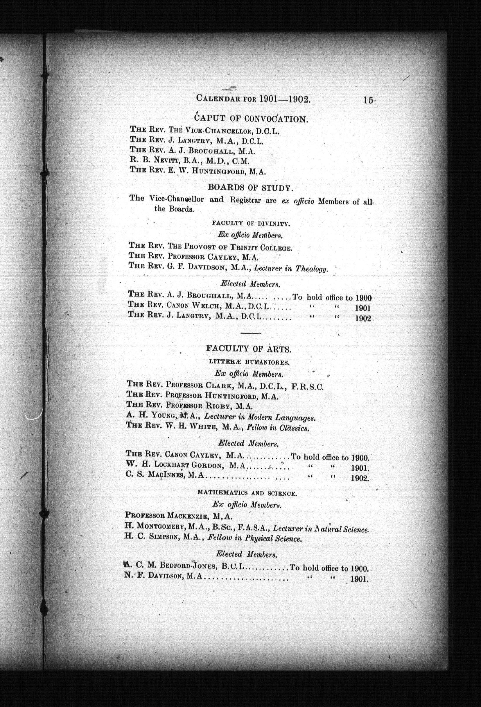 The calendar of Trinity University, Toronto, for the year of our Lord ... : The abridged calendar of Trinitiy University, Toronto, for 1900-1901 : 1900/1901