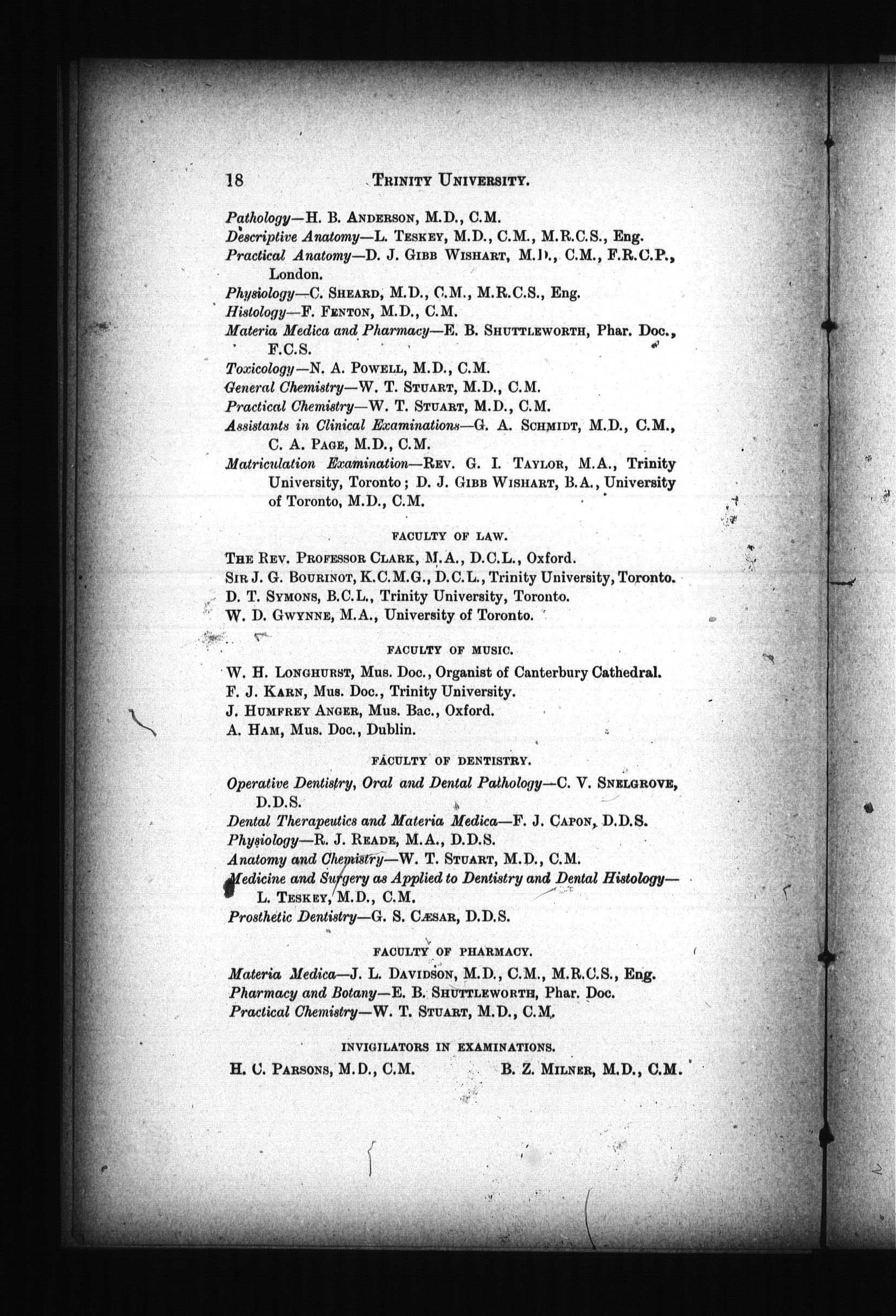 The calendar of Trinity University, Toronto, for the year of our Lord ... : The abridged calendar of Trinitiy University, Toronto, for 1900-1901 : 1900/1901