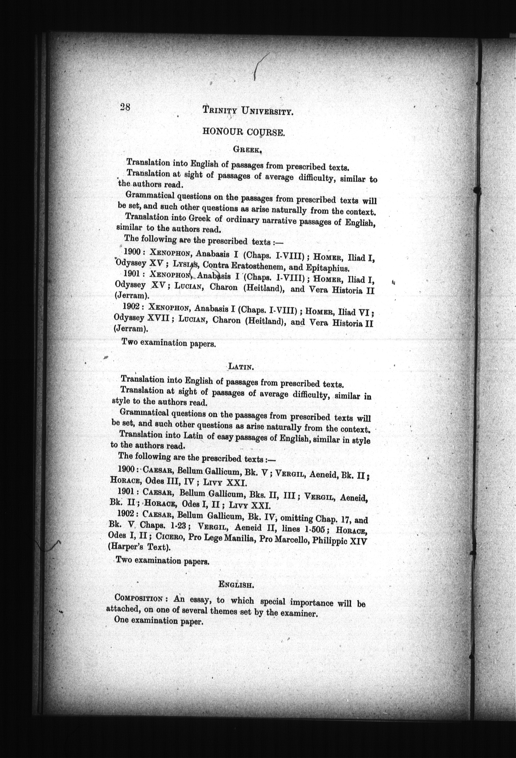 The calendar of Trinity University, Toronto, for the year of our Lord ... : The abridged calendar of Trinitiy University, Toronto, for 1900-1901 : 1900/1901