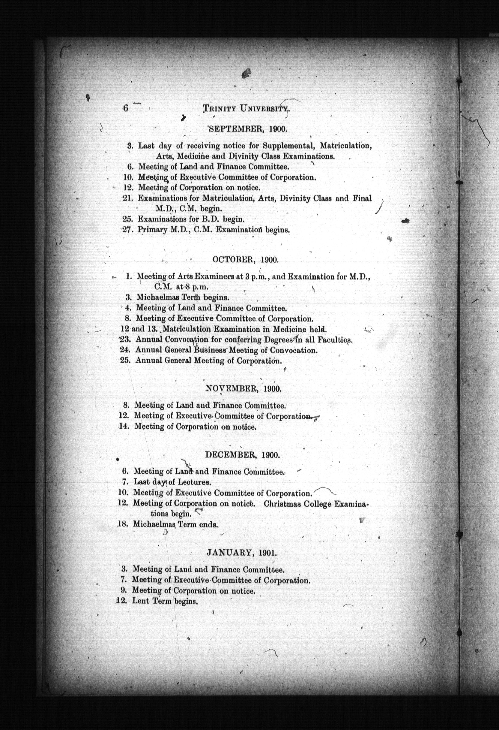 The calendar of Trinity University, Toronto, for the year of our Lord ... : The abridged calendar of Trinitiy University, Toronto, for 1900-1901 : 1900/1901