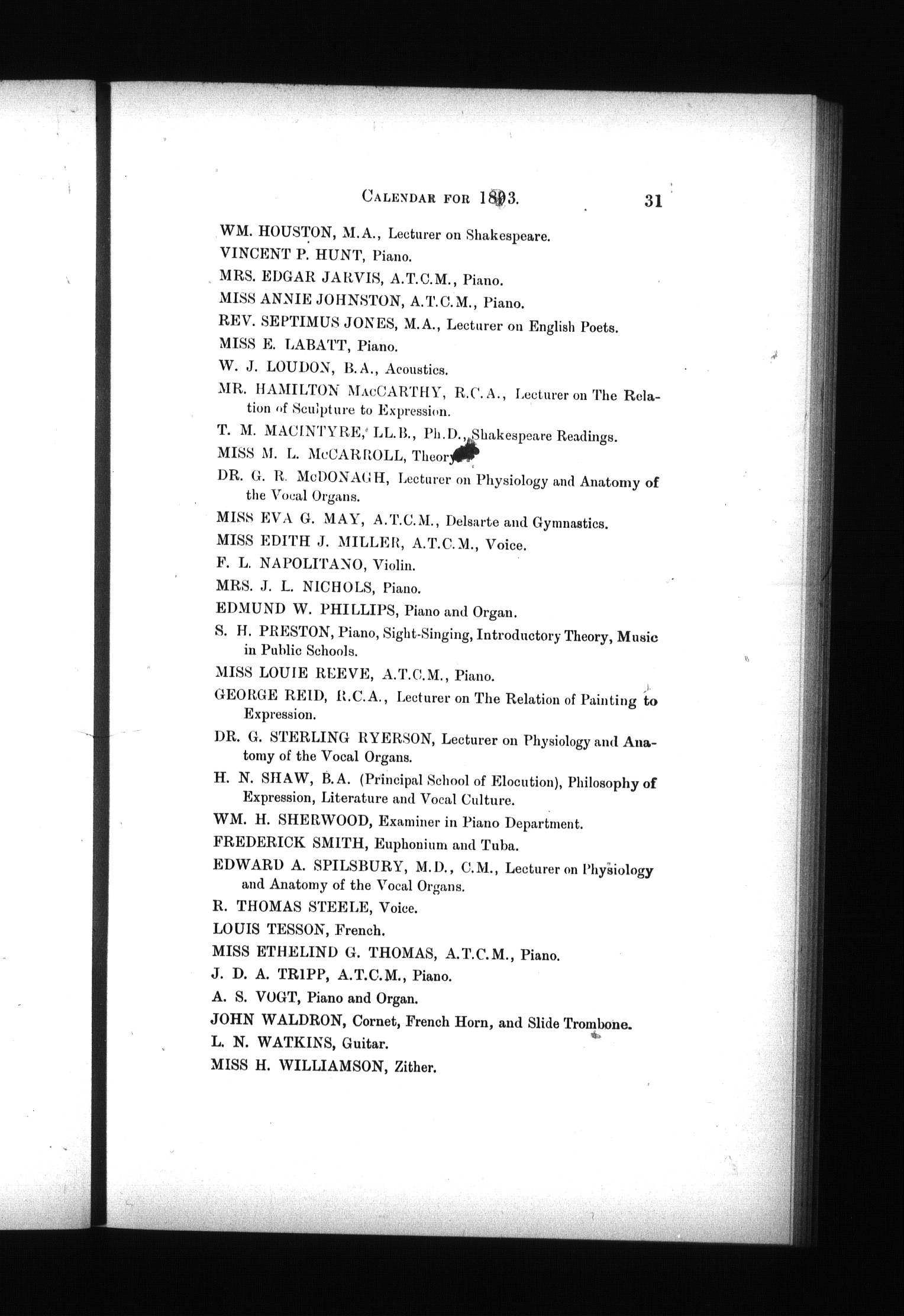 - The calendar of Trinitiy University, Toronto, for the year of our Lord 1893 : 1893