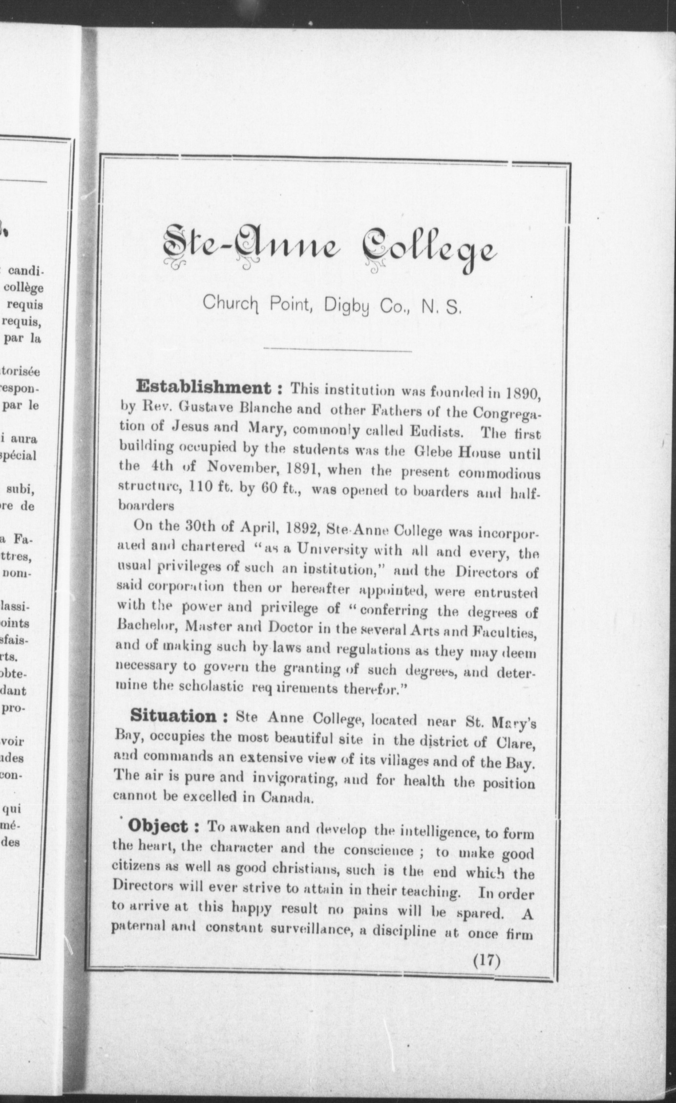 - Annuaire du Collège Sainte-Anne = Annual directory of Sainte-Anne Collge, Church Point, N.S. : 1892-1893