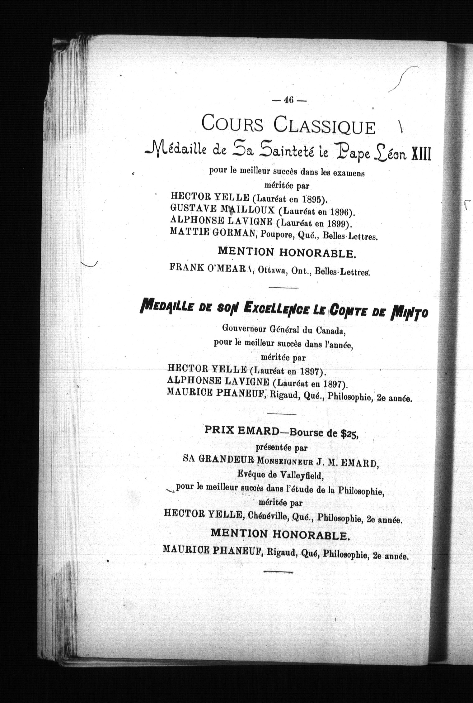 [Rigaud, Québec?] : [Collège Bourget], [1899?]; 72 images avec recherche en texte intégral