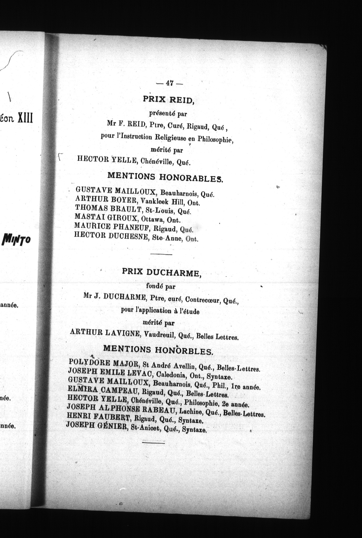 [Rigaud, Québec?] : [Collège Bourget], [1899?]; 72 images avec recherche en texte intégral