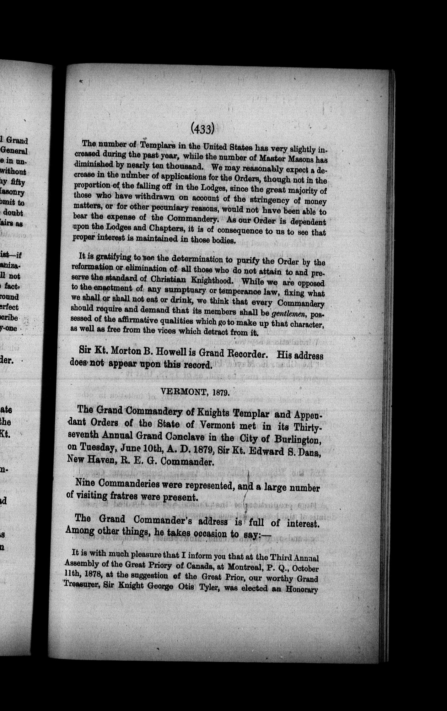 Proceedings of the Great Priory of Canada at the ... annual assembly : Proceedings of the National Great Priory of Canada at the fourth annual assembly : held in the British Masonic Chambers, Notre Dame Street, at the city of Montreal, Quebec, on Friday, 10th of October, A.D. 1879, A.M. 5883, A.O. 761 : Fourth (1879)