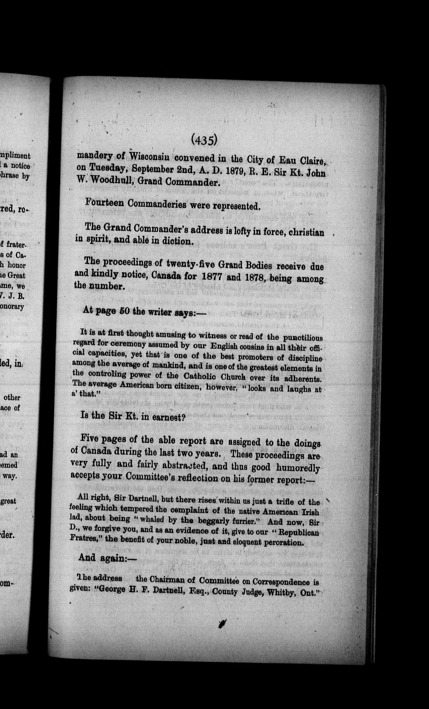 Proceedings of the Great Priory of Canada at the ... annual assembly : Proceedings of the National Great Priory of Canada at the fourth annual assembly : held in the British Masonic Chambers, Notre Dame Street, at the city of Montreal, Quebec, on Friday, 10th of October, A.D. 1879, A.M. 5883, A.O. 761 : Fourth (1879)