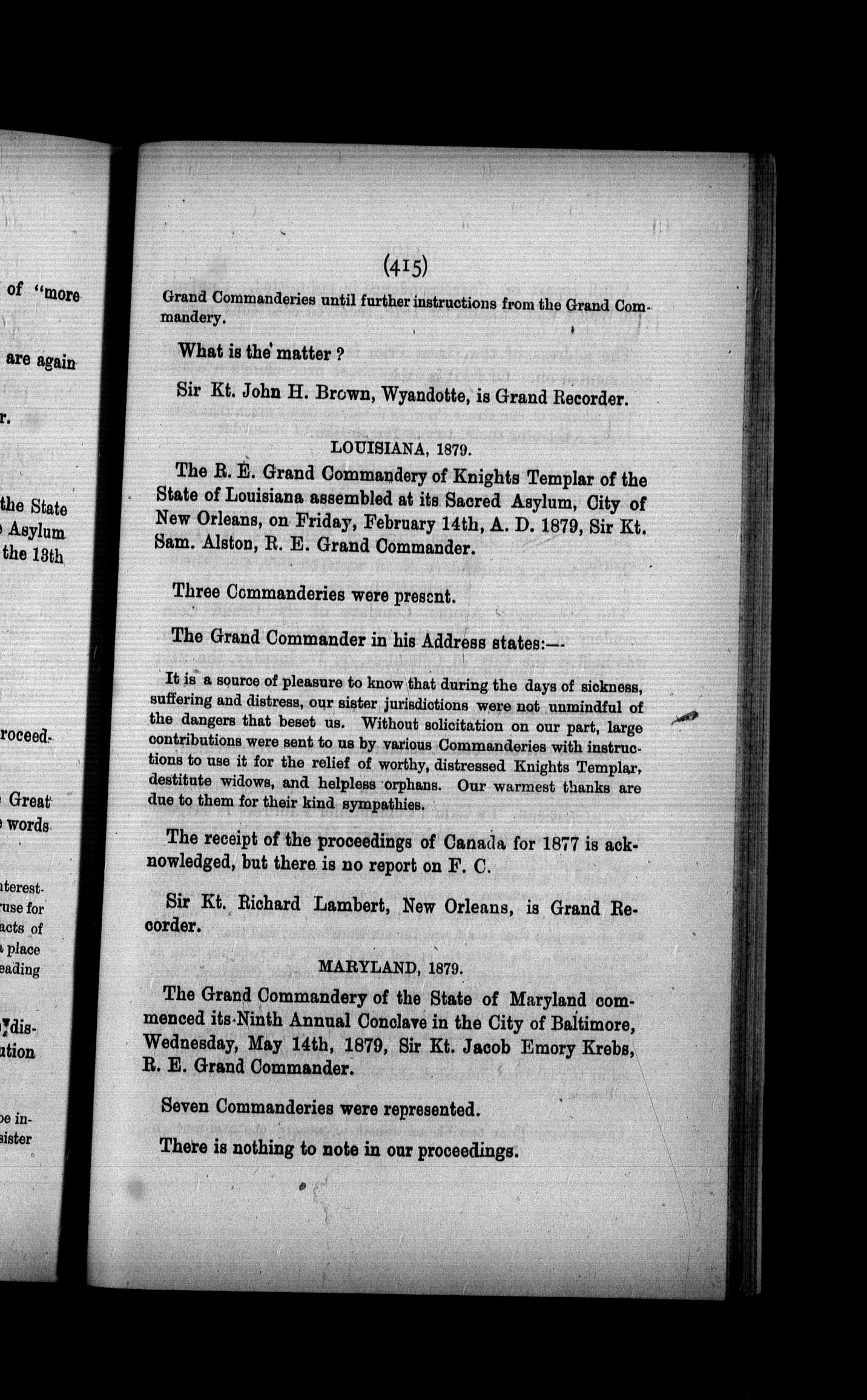 - Proceedings of the National Great Priory of Canada at the fourth annual assembly : held in the British Masonic Chambers, Notre Dame Street, at the city of Montreal, Quebec, on Friday, 10th of October, A.D. 1879, A.M. 5883, A.O. 761 : Fourth (1879)