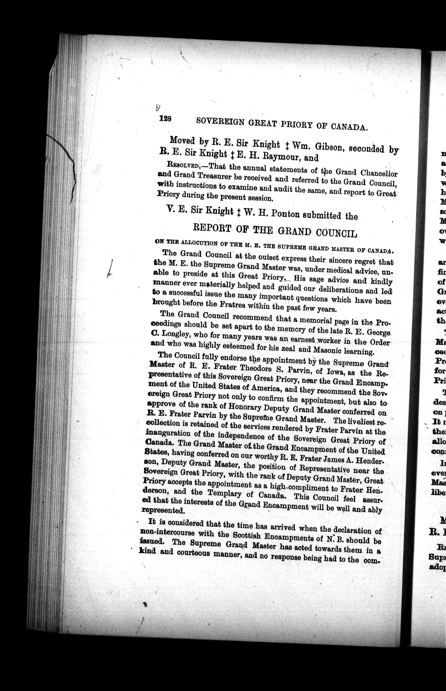Aide [Canada] : [Sovereign Great Priory of Canada], 1885; 104 images, 103 avec recherche en texte intégral